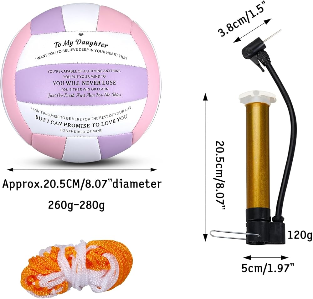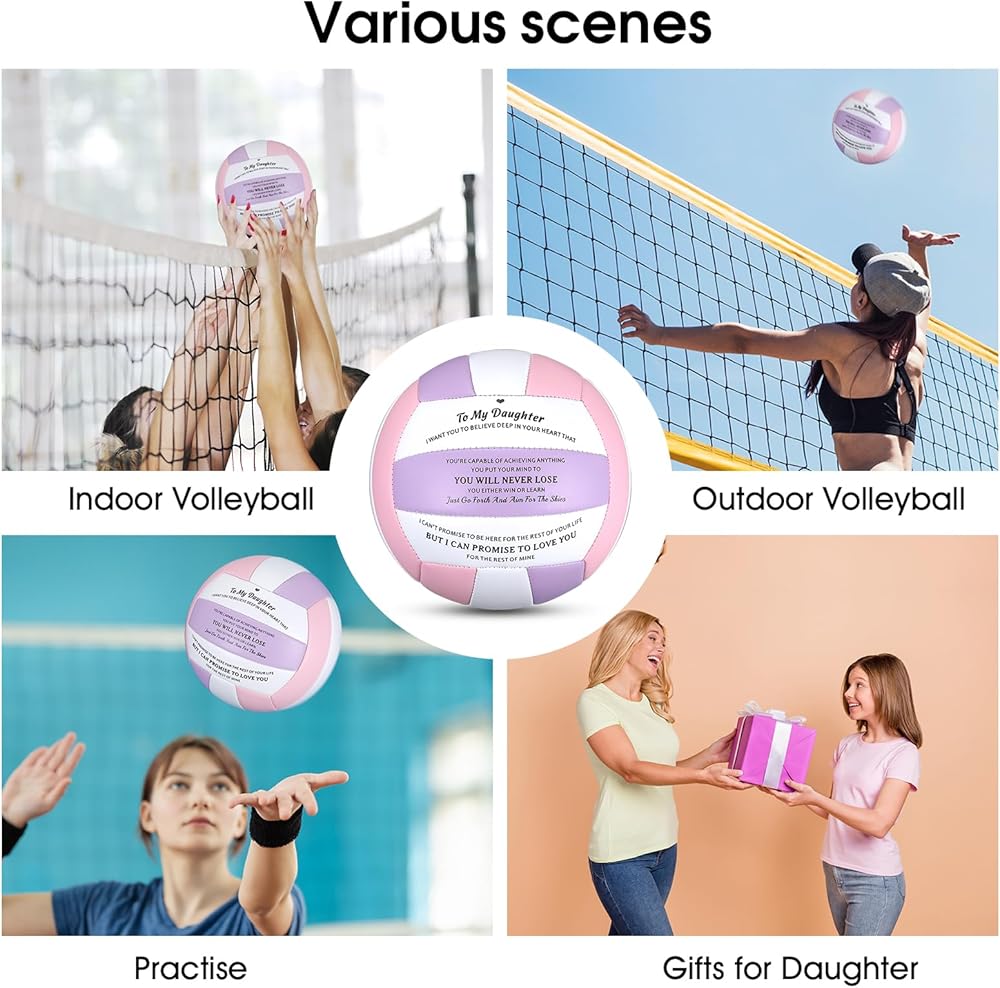 Official indoor and outdoor volleyball:This official size 5 volleyball meets all regulation size requirements for official games and training. It can be used in a variety of settings such as on the beach, patio or court. Wherever your daughter plays, this volleyball is sure to bring her endless fun. This volleyball is an excellent option for those seeking a soft volleyball,volleyball lite ball, beach volleyball, or outdoor volleyball gift for women female