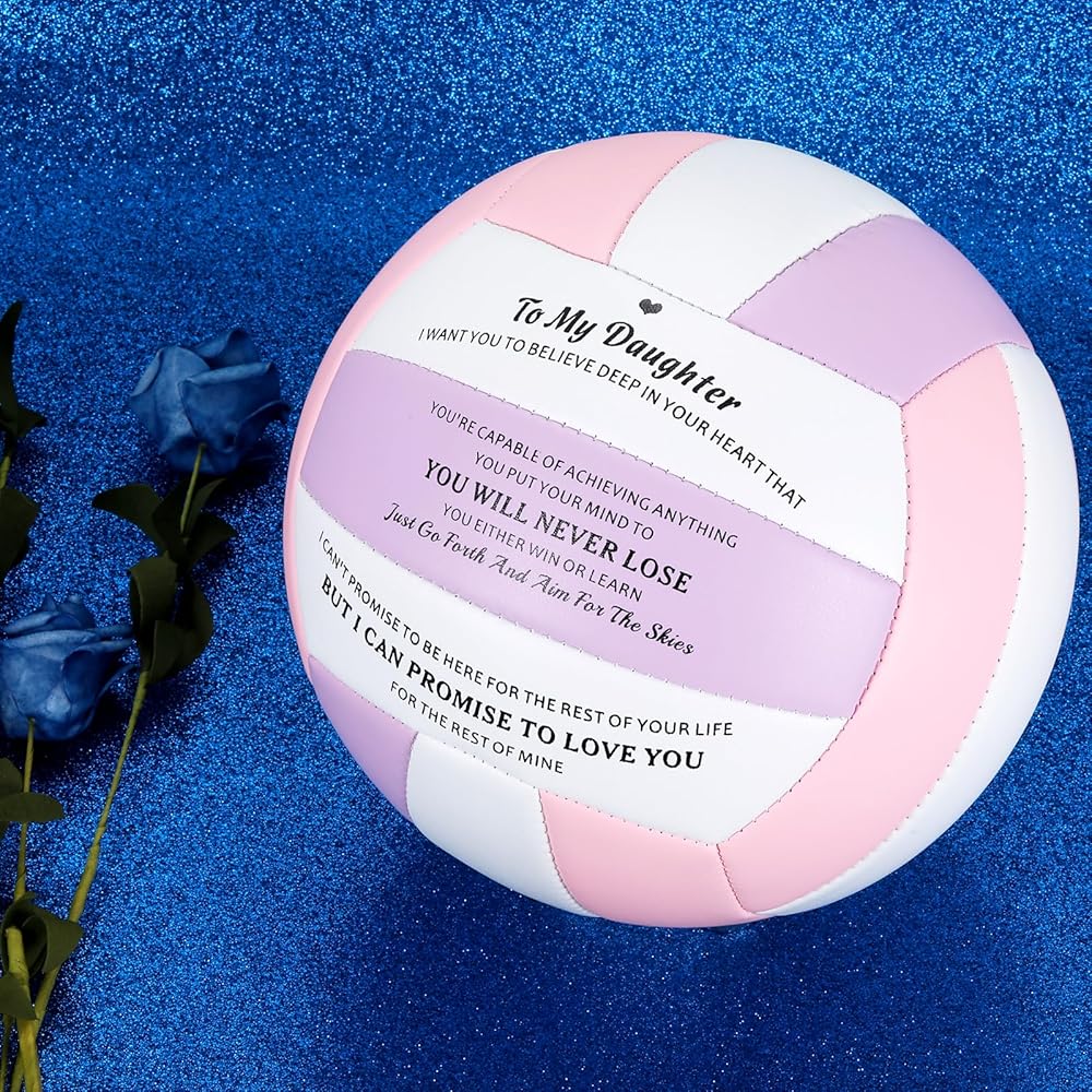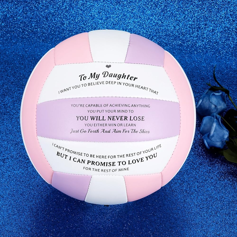 Volleyball gifts for daughter: Our volley lite volleyball is a perfect gift for daughters who love volleyball, with its vibrant pink color and soft touch. We've printed an inspiring message on the volleyball that you can use to tell your daughter or stepdaughter how much you love and appreciate her. This thoughtful design makes the gift even more special and unique. Ideal senior volleyball gifts for women her, volleyball gifts, outdoor volleyball, volleyball ball gifts for daughters