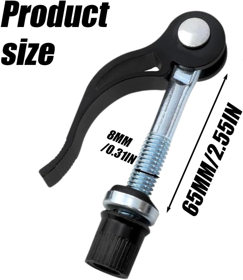 Package & Size: 2pcs bike seat clamps; Screw rod length: 65 mm/ 2.55 inch; Axle diameter: 8 mm/ 0.31 inch