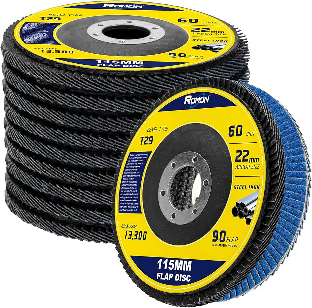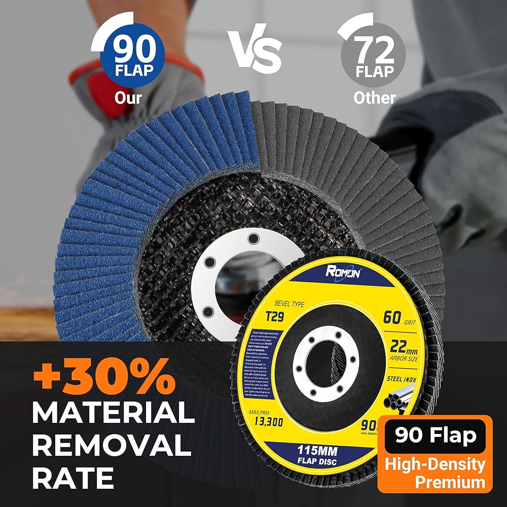 يستخدم على نطاق واسع - يتميز قرص رفرف عجلة المطحنة ROMONN مقاس 4 1/2 × 7/8 بوصة T29 بأداء ممتاز في مختلف المهام، بما في ذلك إزالة المواد الخام، والتصنيع الدقيق، وشطب الحواف، والشطب، والطحن والخلط، وإزالة الأزيز، وإزالة الصدأ. مصممة لكل من المحترفين وعشاق الأعمال اليدوية، تضمن عجلات الطحن مقاس 4 1/2 نتائج فعالة ودقيقة لكل مشروع
