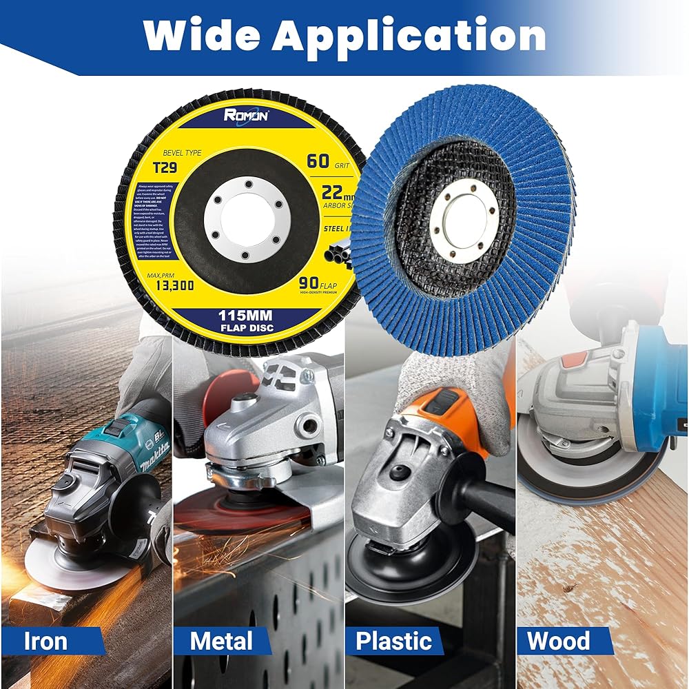 الملحقات العالمية - إنها أقراص طحن متعددة الاستخدامات ومتوافقة، ومناسبة لـ Dewalt، وMilwaukee، وMakita، وBosch، وMetabo، وRyobi، وBlack&Decker، وKobalt، وCraftsman، وSki، وPorter Cable، وRidgid 4.5 و5 بوصات، بالإضافة إلى جميع المطاحن الزاوية تقريبًا. وغيرها من العلامات التجارية، ويمكن استخدامها في العديد من الصناعات مثل السيارات والنقل والتعدين وبناء السفن والبناء واللحام والتصنيع