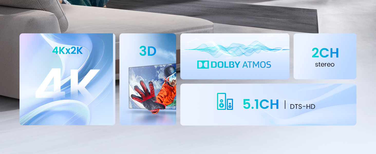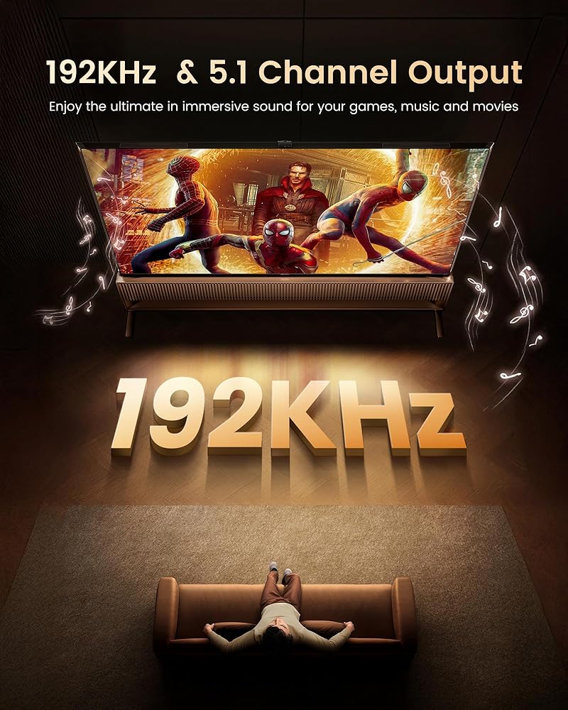 دقة فيديو عالية 4K: يدعم محول الصوت HDMI دقة تصل إلى 4K@30hz، HDMI 1.4b، HDCP 1.4، Full HD 1080P، ثلاثي الأبعاد، ولون عميق 36 بت. دعم تنسيق الصوت: DTS-HD/Doblly-trueHD/LPCM7. 1/دي تي إس/دوبلي-AC3/DSD
