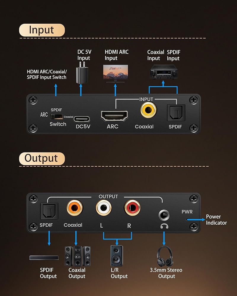 متوافق على نطاق واسع: محول صوت HDMI إلى HDMI plus متوافق مع أجهزة مصدر HDMI المختلفة. مدخل HDMI: مشغل Blu-ray، DVD، مشغل HD، صندوق الكابل/الأقمار الصناعية، Amazon Fire TV. متوافق مع Apple TV، وPS3/PS5، وXbox، والكمبيوتر الشخصي/الكمبيوتر المحمول، وكاميرا HD، وFire Stick، وRoku، وHD DVR وما إلى ذلك. مخرج HDMI: تلفزيون عالي الدقة بالكامل، وشاشة، وجهاز عرض. إخراج الصوت: مكبر الصوت، مكبر الصوت، مكبر الصوت أو أنظمة الصوت الأخرى