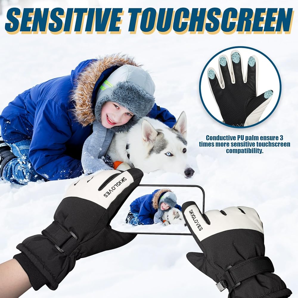 Kids Ski Gloves Windproof Warm Winter Snow Cold Weather Snowboard Sport Mittens for Boys Girls