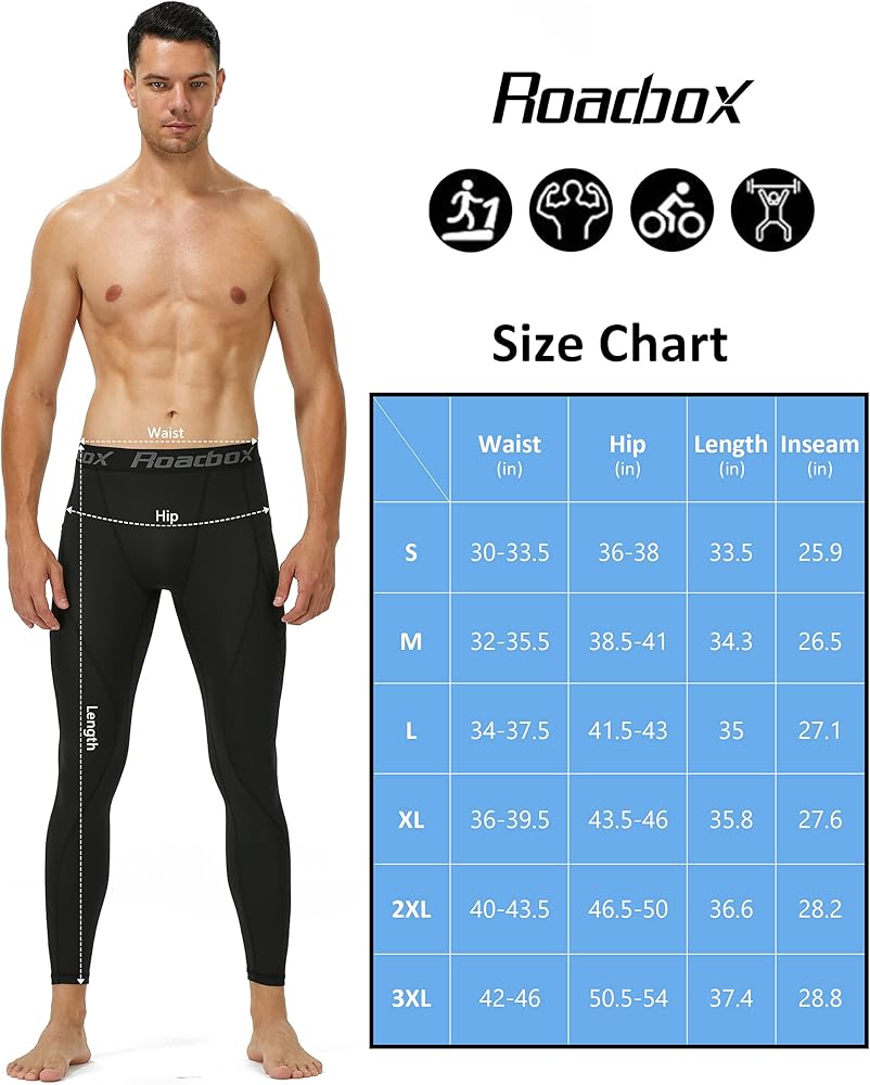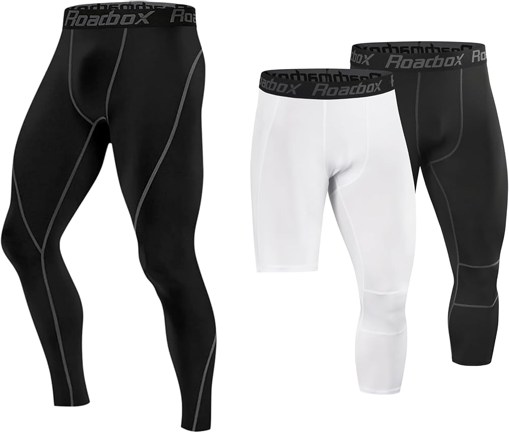 مجموعة السراويل الرياضية الضاغطة من Roadbox: سراويل مضغوطة للرجال بطول كامل و3/4 ساق واحدة (الحجم: M)