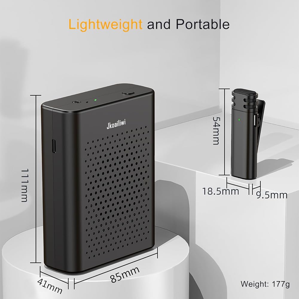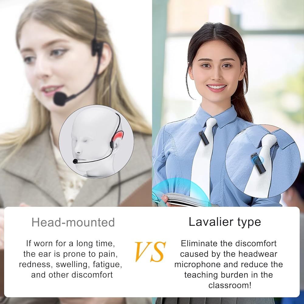 【تقليل عبء التدريس】يتضمن مضخم الصوت الخاص بنا للمعلمين ميكروفونًا لاسلكيًا يمكن تثبيته بسهولة على الطوق أو ربطة العنق. يوفر هذا التصميم ميزة واضحة من خلال القضاء على الانزعاج الذي تسببه ميكروفونات سماعات الرأس التقليدية. فهو يخفف العبء التدريسي بشكل كبير، مما يجعل التدريس في الفصل الدراسي أكثر راحة وكفاءة!