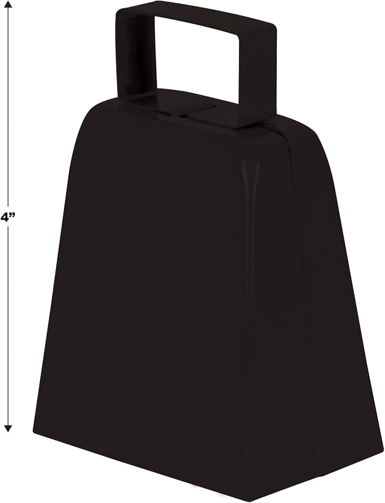 Cheer louder and show your team pride with Beistle Black Cowbells! This pack of 12 metal cowbells, each measuring 4 inches, is perfect for school spirit events, pep rallies, game days, and sporting events. Featuring a sleek black color, these durable metal noise makers produce a loud, attention-grabbing sound to energize any crowd. Lightweight and easy to handle, these cowbells are great for fans, helping you bring excitement to any celebration, event, or team game.