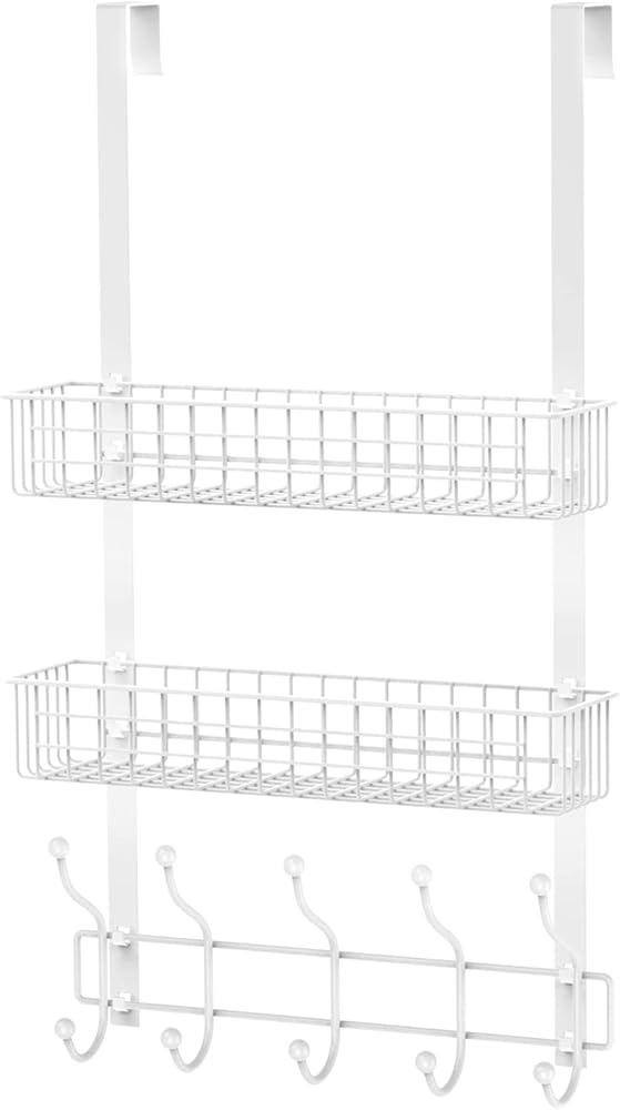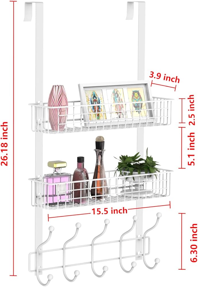 - 【توفير المساحة】تصميم معلق ويتميز بـ 5 خطافات وسلة شبكية واحدة للتعليق والتخزين. حافظ على غرفة نومك أو حمامك أو مطبخك أنيقًا ومنظمًا