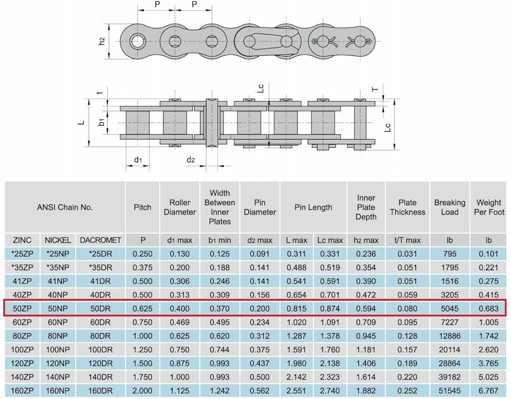 - ASNI #50NP سلسلة أسطوانية صناعية مطلية بالنيكل