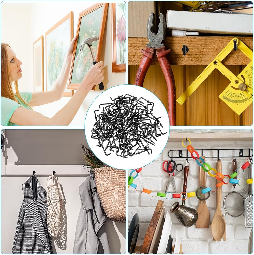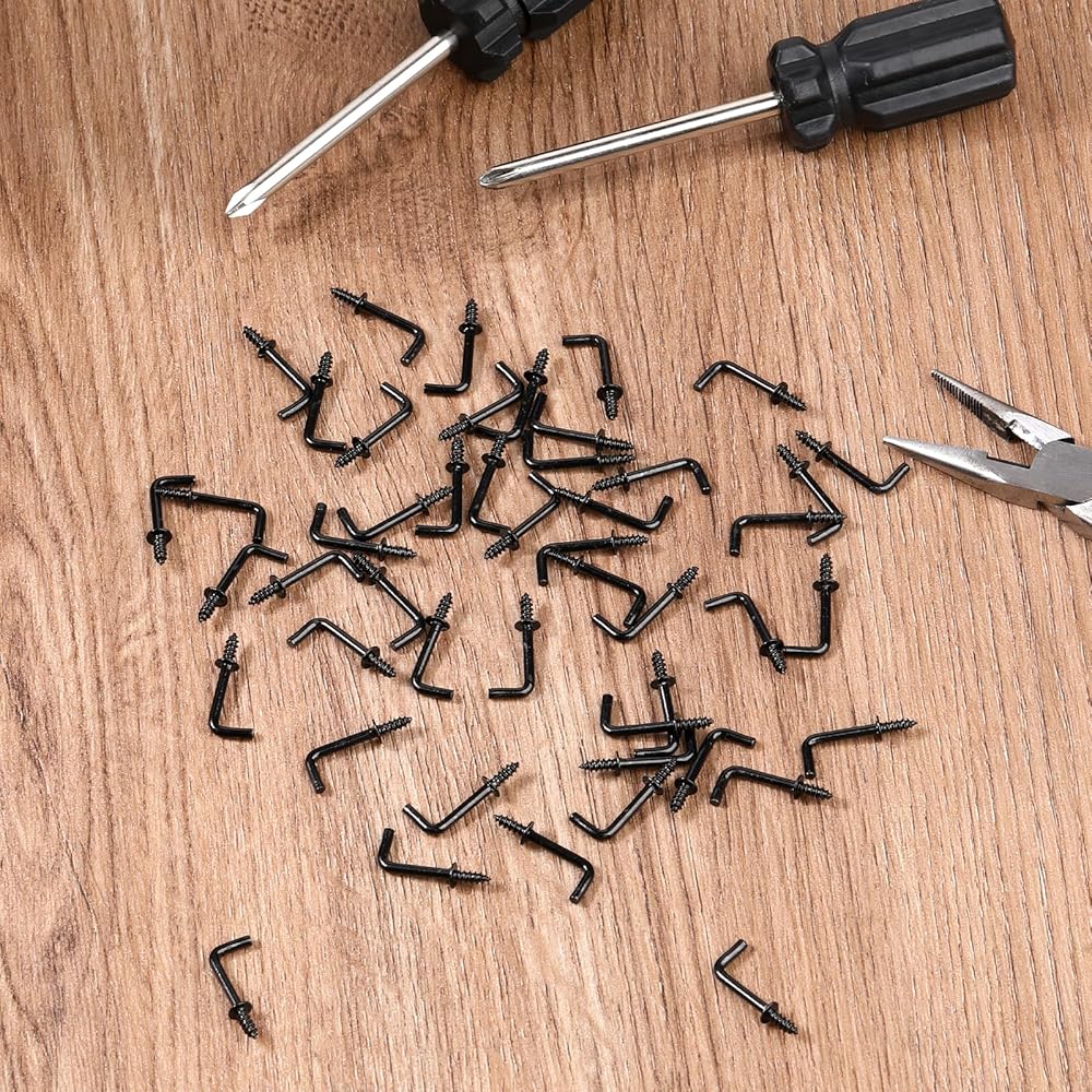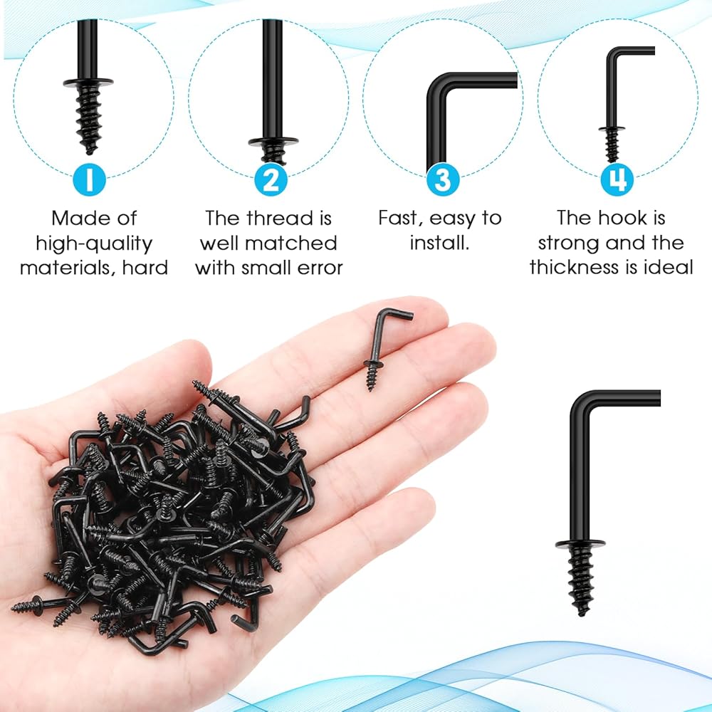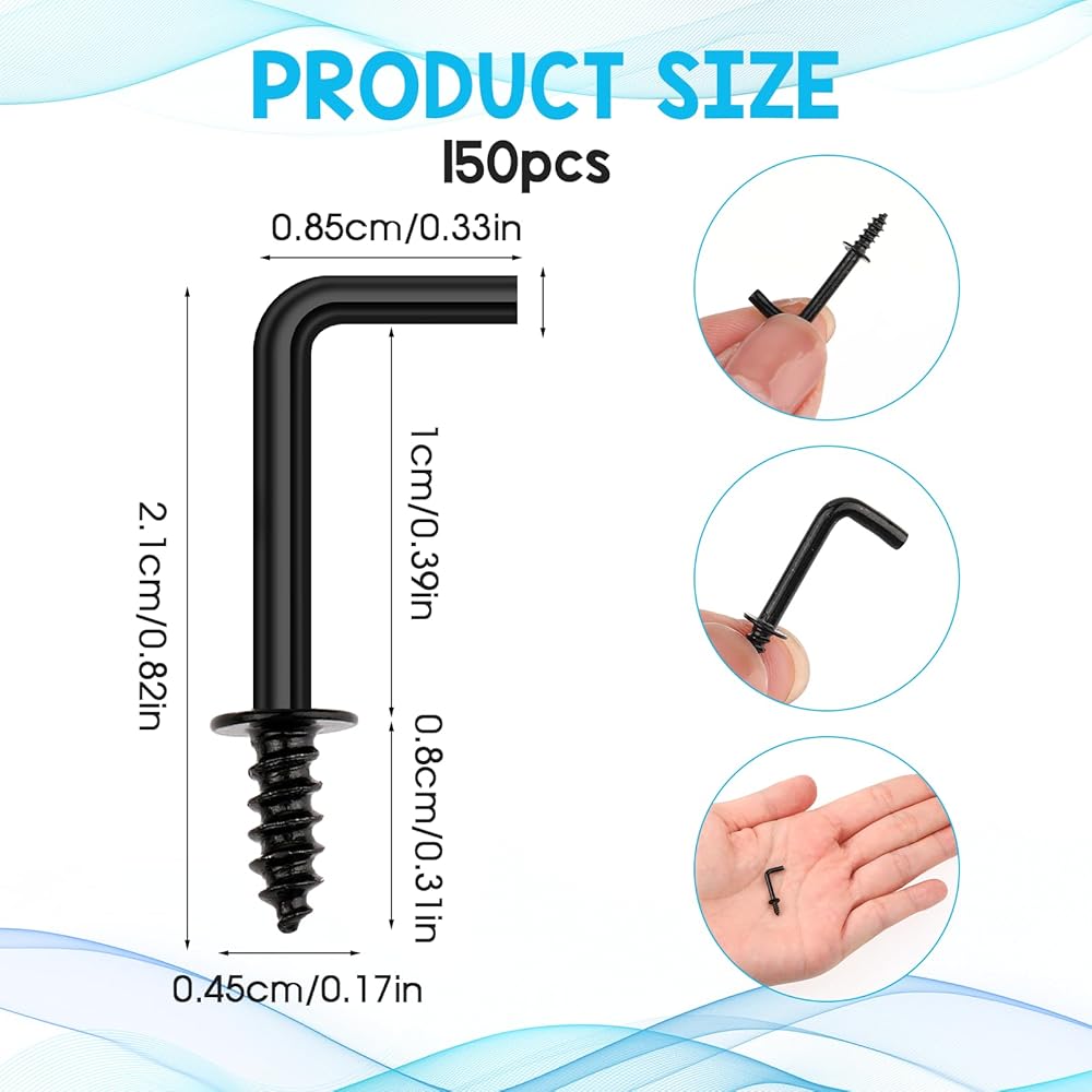 Packing list: 150pcs 1/2” L-shaped black screw hook