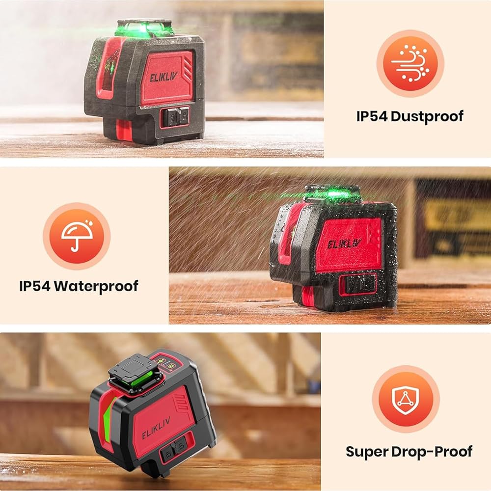 • خيارات وظيفة مستوى الليزر: 2x360 درجة أفقيًا و2x360 درجة عموديًا، مستوى ليزر 360 درجة ذاتي التسوية يمكن أن يغطي جميع أنحاء الغرفة. علاوة على ذلك، يمكن لمستوى الليزر 4 × 360 درجة أن يربع الغرفة بأكملها في ثوانٍ! باستخدام جهاز استقبال ليزر خط Elikliv في الإضاءة القوية أو الظروف الخارجية، يساعد وضع النبض الخارجي على توسيع نطاق الليزر إلى 200 قدم. بالإضافة إلى ذلك، تتحقق أنظمة التسوية الذاتية لمستوى الليزر تلقائيًا من المستوى الصحيح (±3˚) ومع أصوات تنبيه ساطعة، يمكنك يمكن أن تتلقى تنبيهات سريعة حتى عندما تكون بعيدًا.