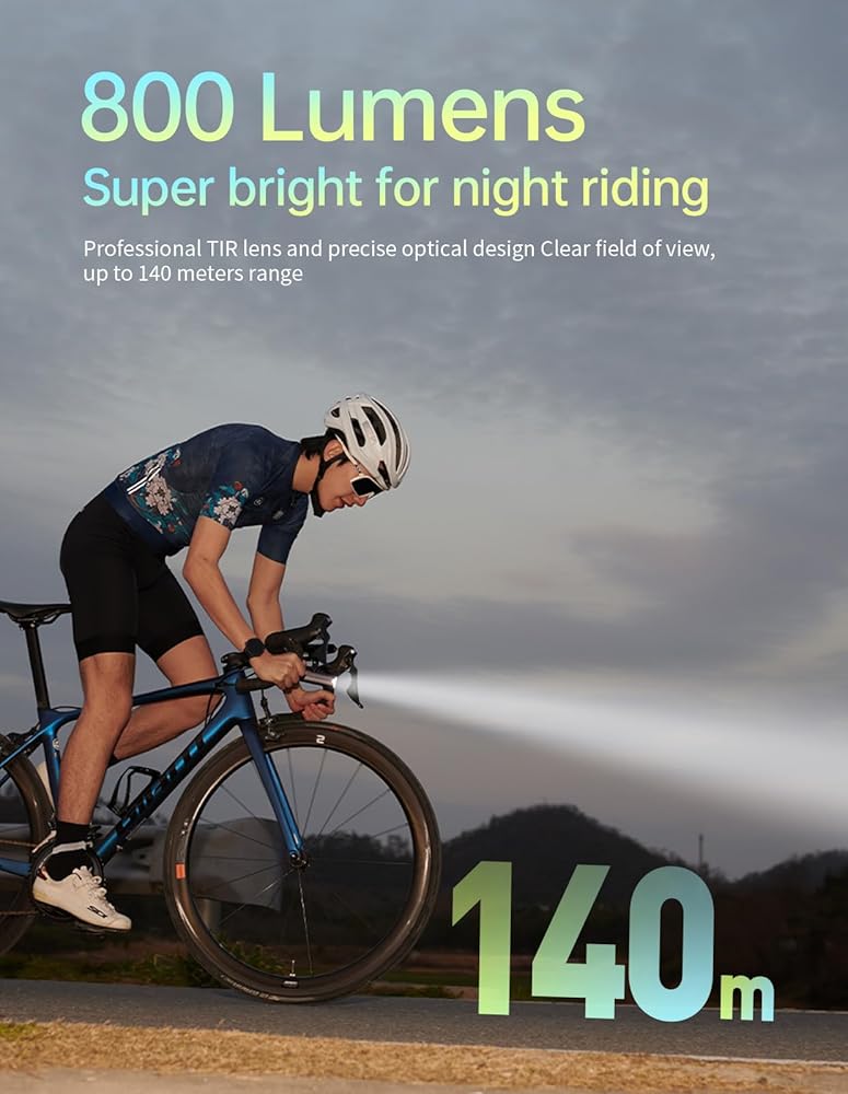وظائف ذكية: يعمل المصباح الأمامي للدراجة VS1200 تلقائيًا عند بدء ركوب الدراجات، أو يتحول إلى وضع النوم عند التوقف عن ركوب الدراجات؛ يتم إيقاف تشغيله تلقائيًا للحفاظ على الطاقة عندما تكون هناك إضاءة كافية، أو يتحول تلقائيًا إلى وضع الإضاءة عند الركوب في الظلام أو الأنفاق.