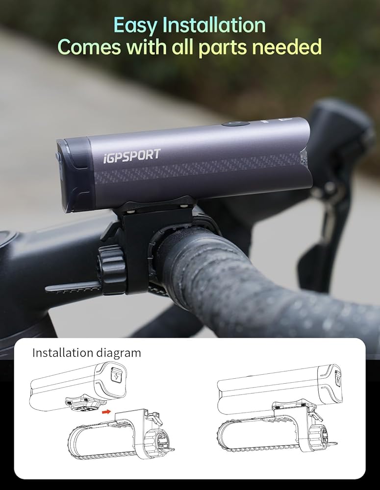 【يأتي مع حامل】يأتي مصباح ركوب الدراجات VS1200 مع حامل، ويمكن استخدامه مع كمبيوتر الدراجة أيضًا.
