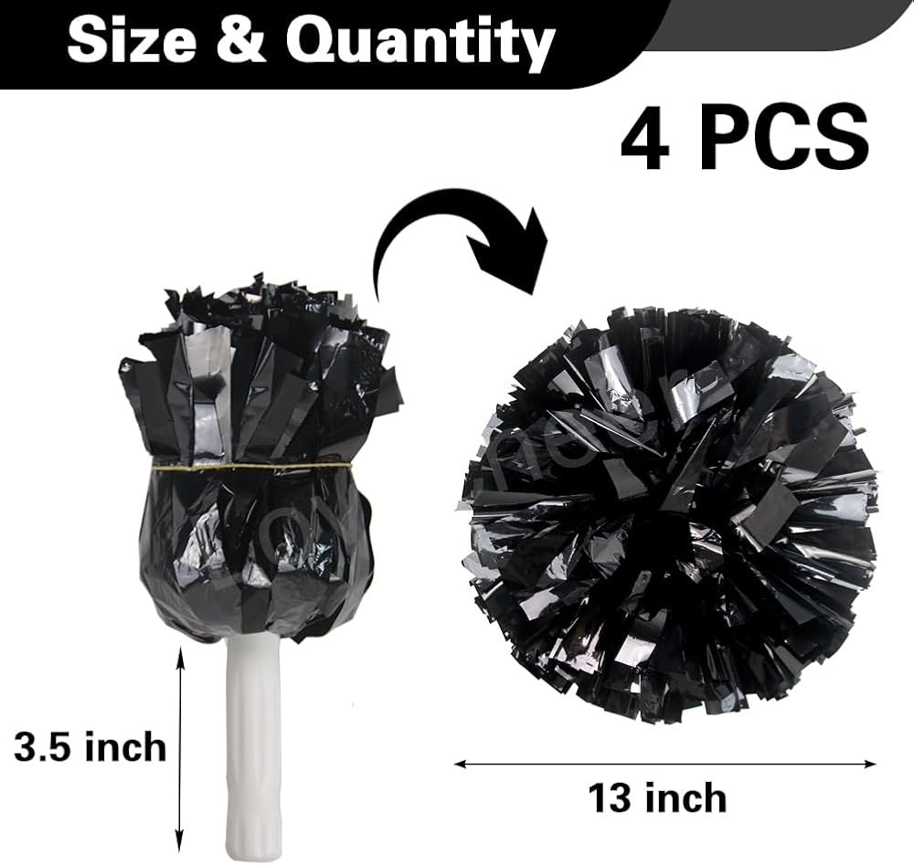 SIZE&PACKAGE: After fluffing total length is approx.13 inch; 4Pack(2 Pairs) cheerleader pom poms, share with your team partners, sisters, brothers, friends