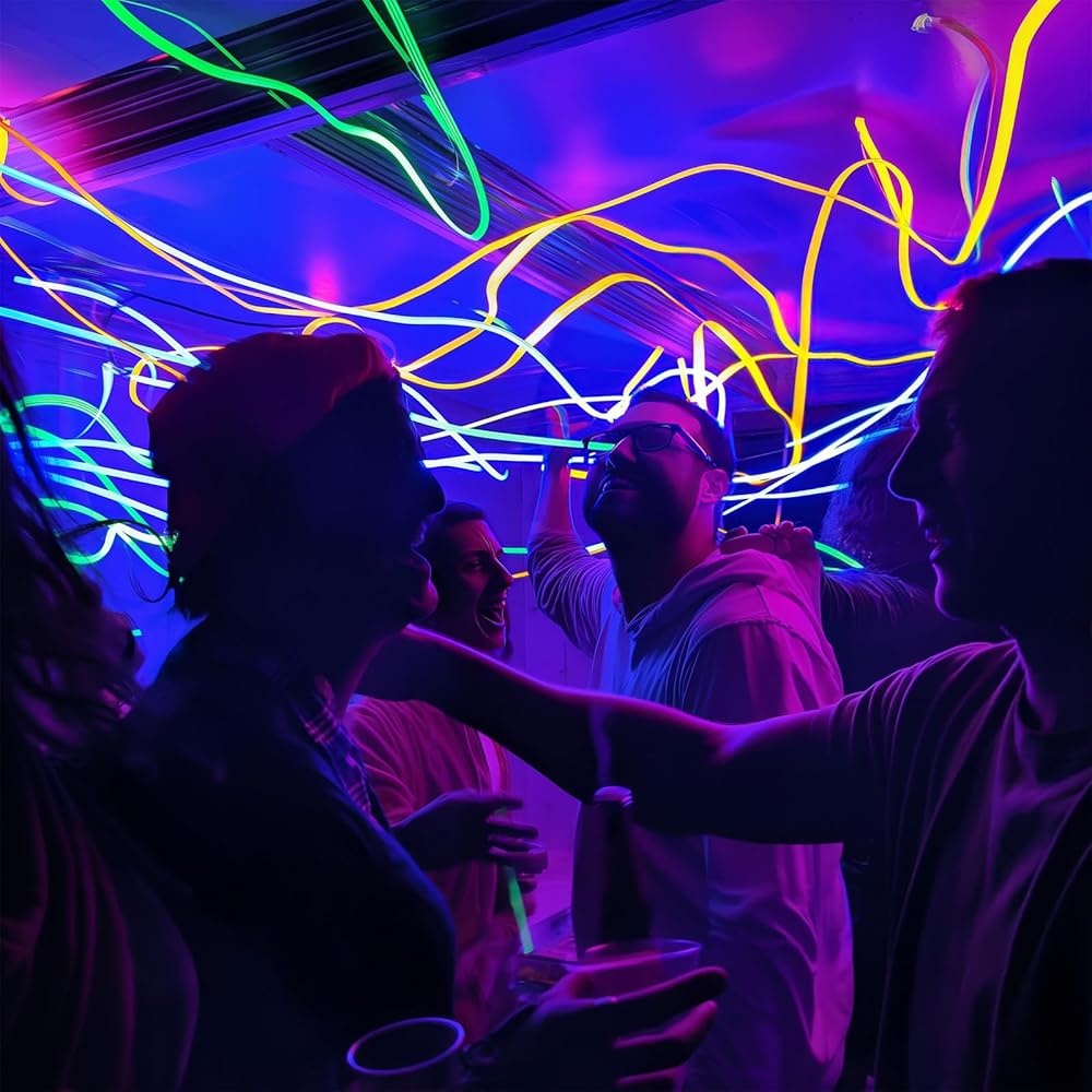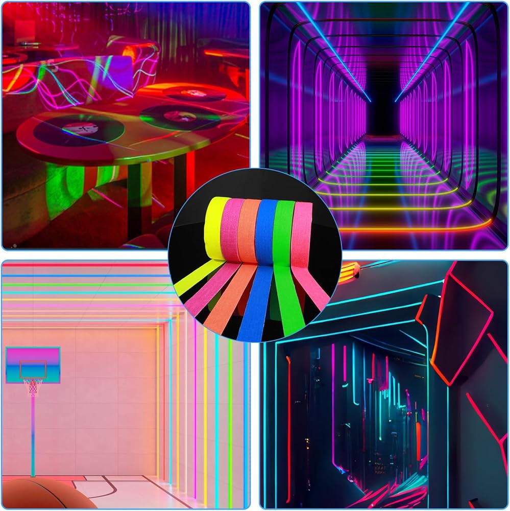 Radiant Glow Under UV Light: These glow in the dark tape come alive under UV light/blacklight, offering a striking visual effect that enhances any setting. Perfect for glow parties, they add a mesmerizing glow to your decorations without glowing on their own, reacting brilliantly under UV illumination