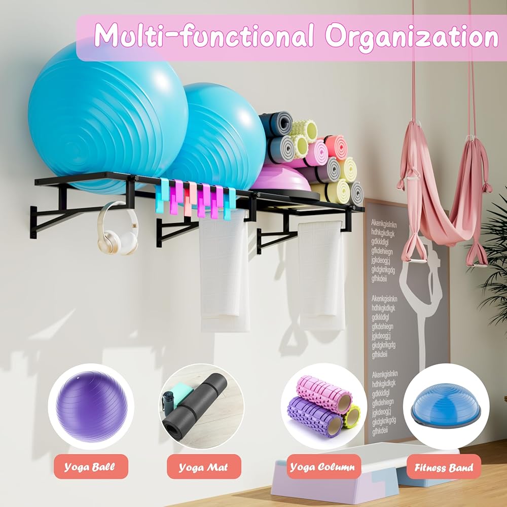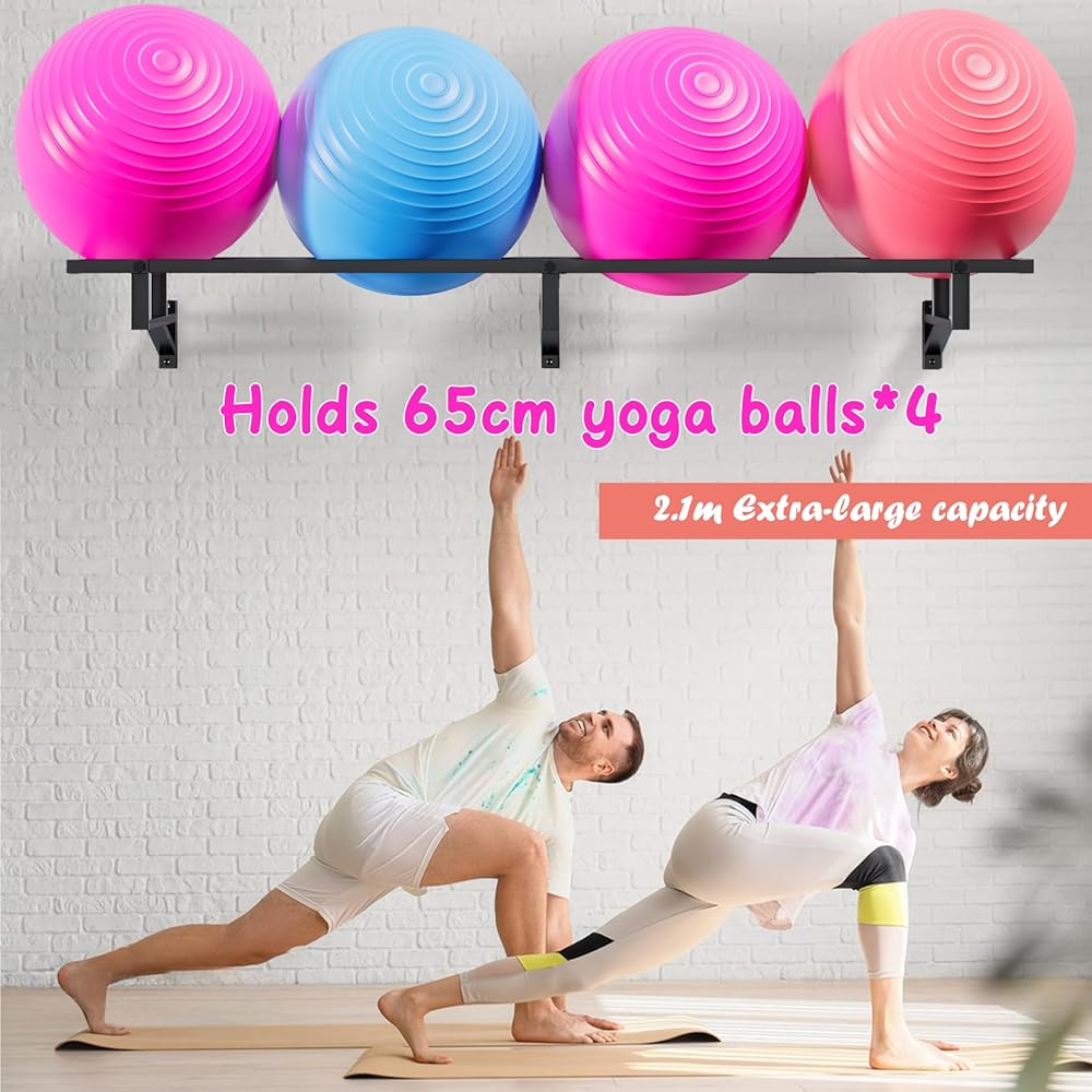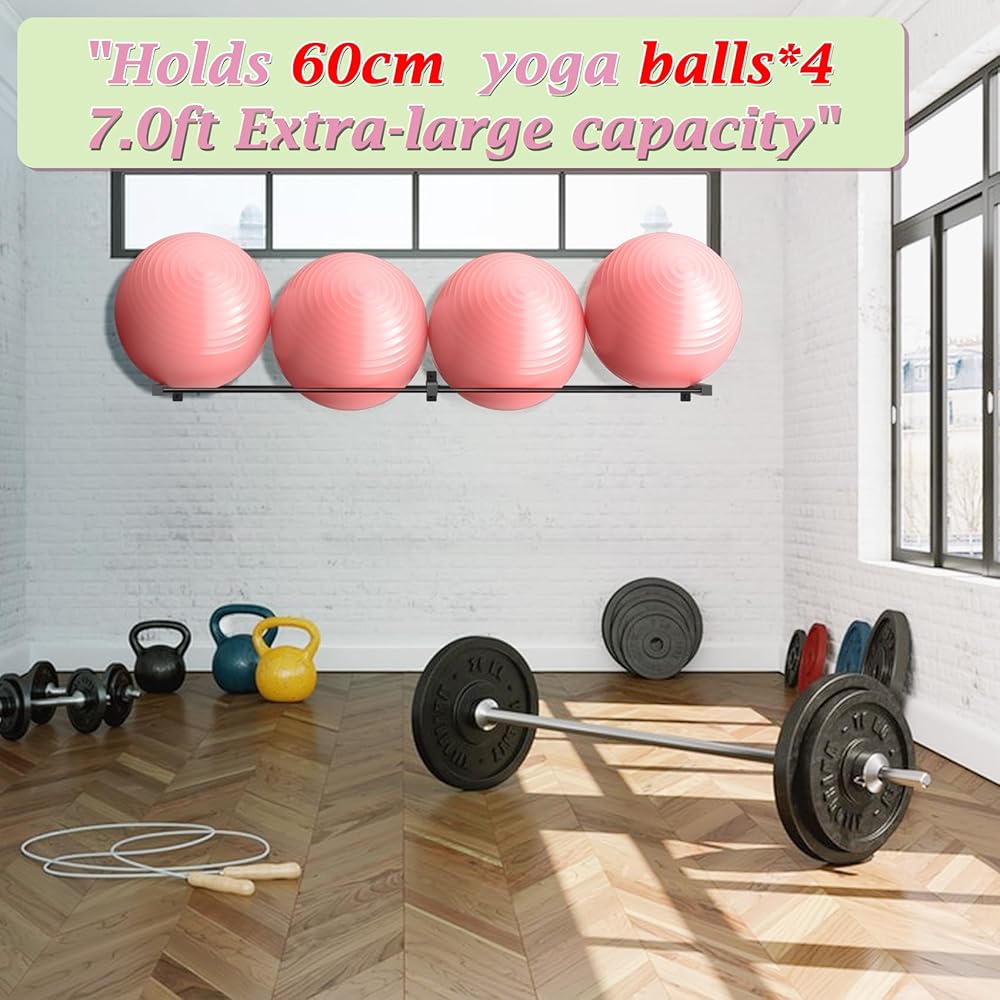 حجم كبير للغاية - حامل كرة بطول 2.1 متر لا يساعدك فقط على تنظيم كرات اليوجا الفوضوية وكرات التمرين خفيفة الوزن، ولكنه يوفر أيضًا المساحة عن طريق تجنب شغل مساحة الأرضية مما يؤدي إلى مساحة مزدحمة.