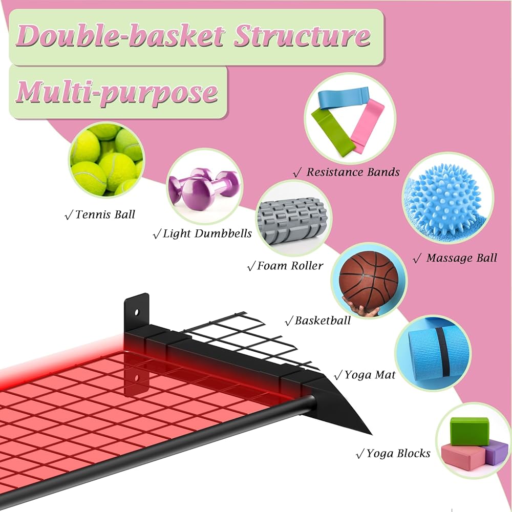 متعددة الأغراض - تصميم شبكي متزايد لتخزين كرة اليوجا، شبكة وجدار، حاجز لتشكيل تأثير سلة التخزين، يمكنك وضع التنس والبيسبول وكرة القدم وكرة السلة وما إلى ذلك، لا داعي للقلق بشأن السقوط.