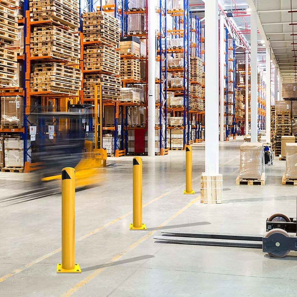 عمود الأمان، Towallmark 8 عبوات بارتفاع 91.44 سم، قطر 4.5 بوصة، عمود بولارد من الفولاذ الأصفر الآمن، مع 32 مسمار تثبيت، للتحكم في حركة المرور، حاجز الممر، عمود وقوف السيارات