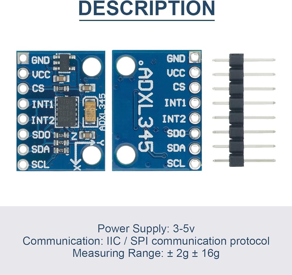 Analog to digital conversion, reducing system cost and board space. In addition, ADXL345 is a small, thin, ultra to low power 3 to axis accelerometer with high resolution (13 to bit) measurement at up to plus or minus 16g. Digital output data is 16 to bit twos complement format, can be accessed via I2C digital interface SPI (3 to wire or 4 to wire).