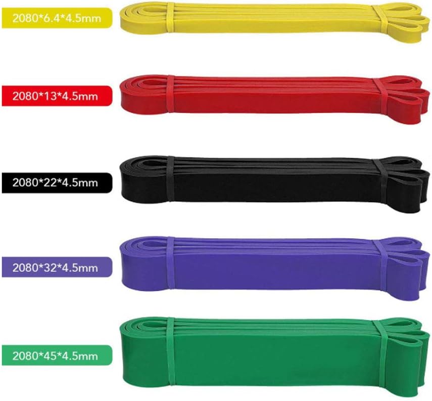 Set of 5 NUZAMAS natural latex resistance bands, from 5lbs to 120lbs.