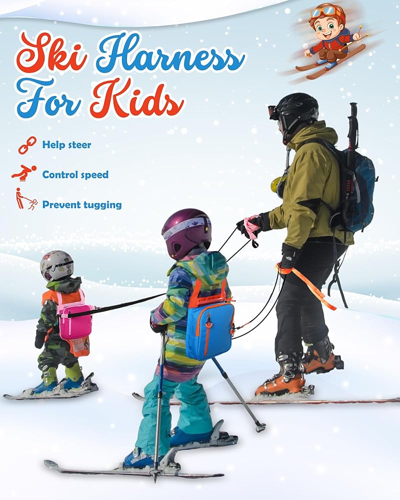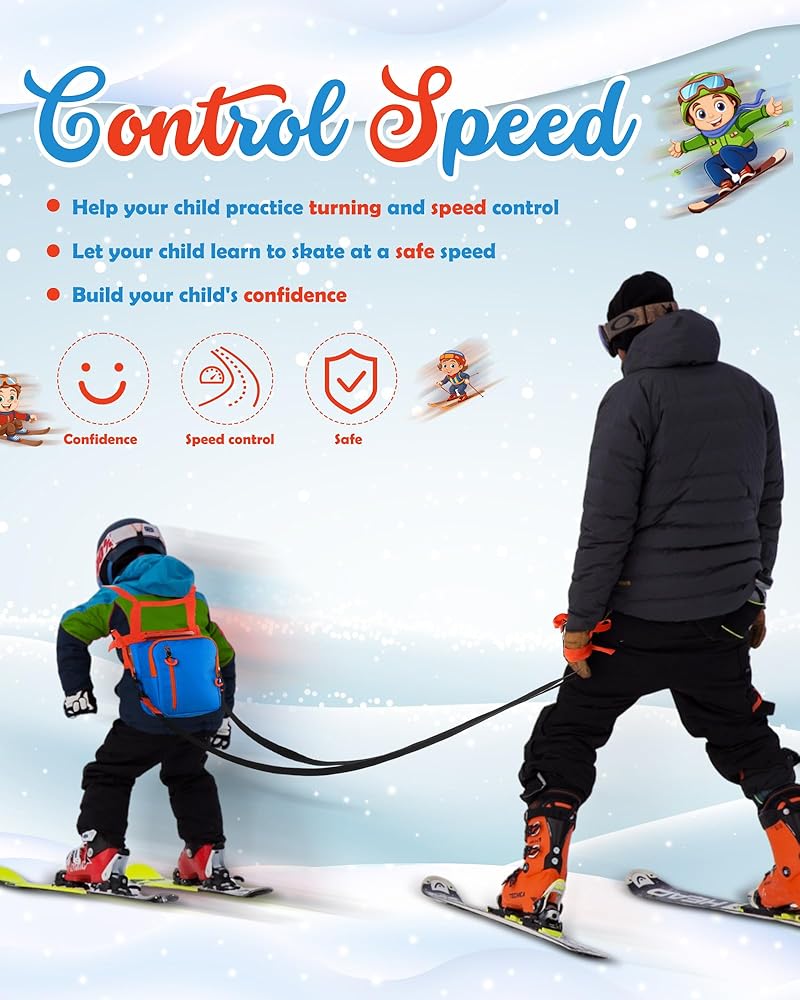 Provides Steering and Speed Control: the Child Ski Harness offers a fast, fun, and effective way to learn skiing. It helps kids practice turns and control their speed, with adults easing back on the shock-absorbing leashes to slow them down. This setup boosts confidence as kids learn to navigate downhill at a safe pace. Ideal for both skiing and snowboarding
