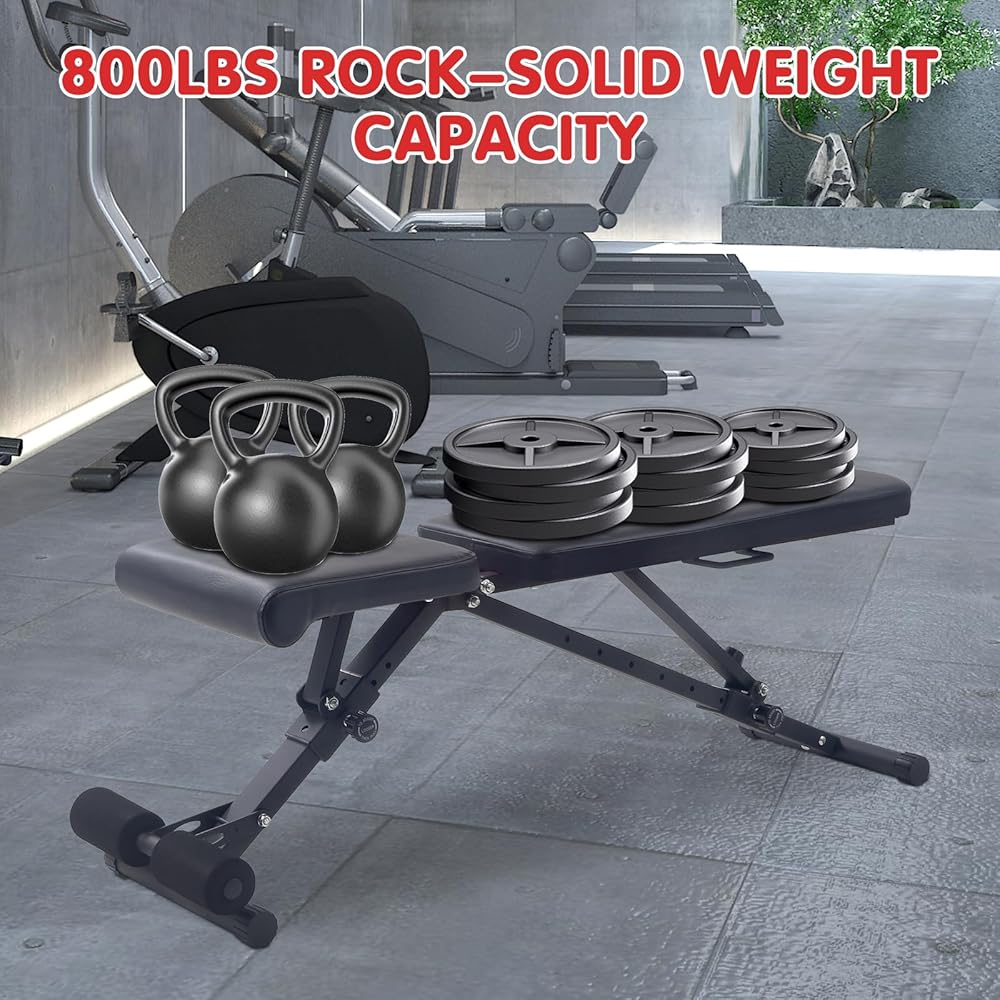 【سعة وزن 800 رطل】- تم تصميم مقعد الوزن القابل للتعديل مع وضع المستخدمين الأقوياء في الاعتبار، باستخدام مادة إطار فولاذي عالية القوة لضمان أن المقعد قادر على حمل الوزن الكافي (800 رطل).