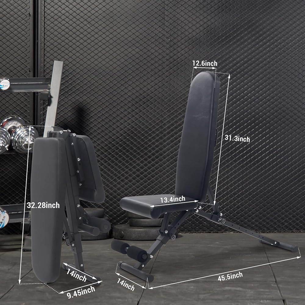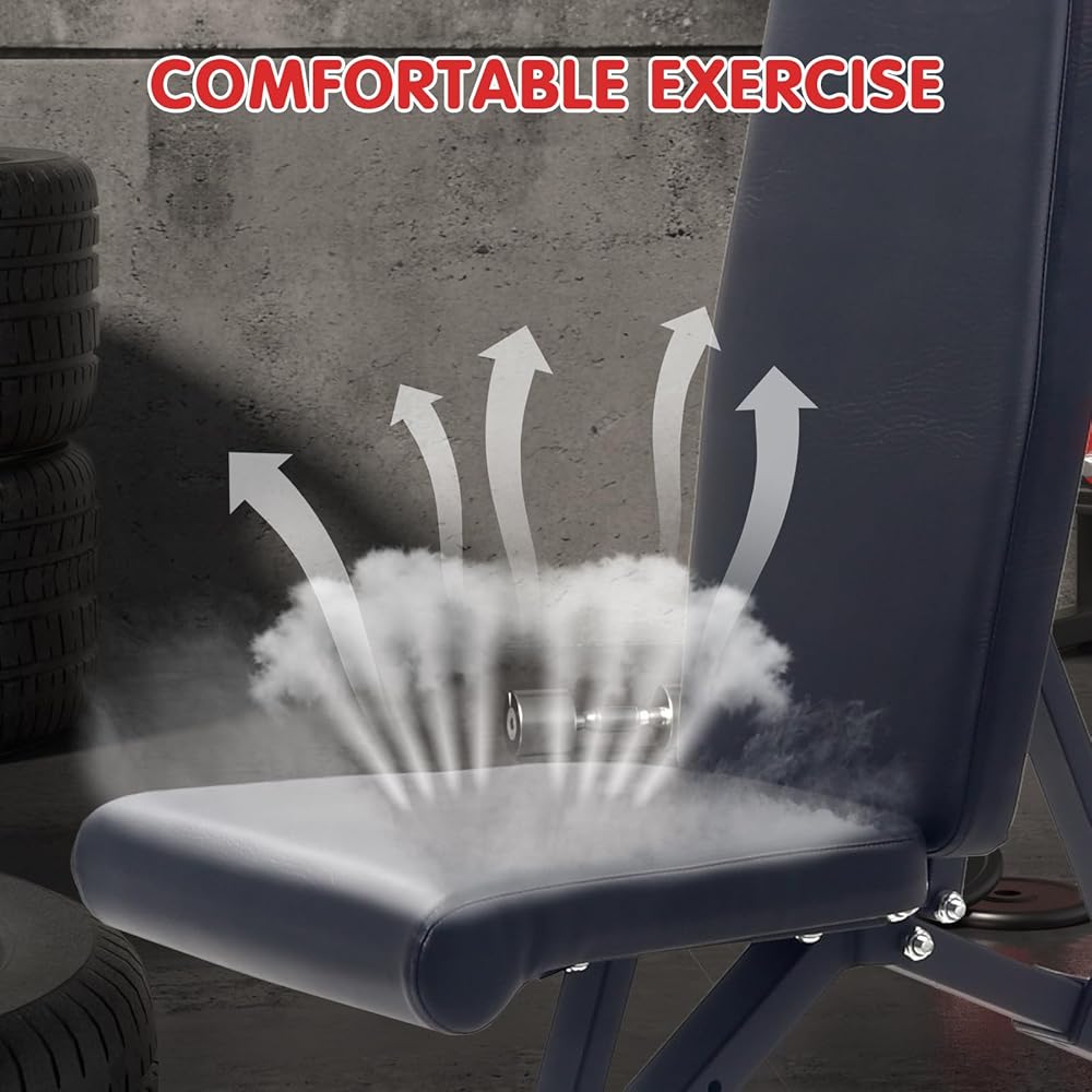 【تصميم مريح】- تم تصميم مقعد الوزن القابل للطي هندسيًا لضمان الوضع المناسب للمستخدم أثناء التدريبات، مما يقلل من خطر الإصابة وزيادة الراحة.