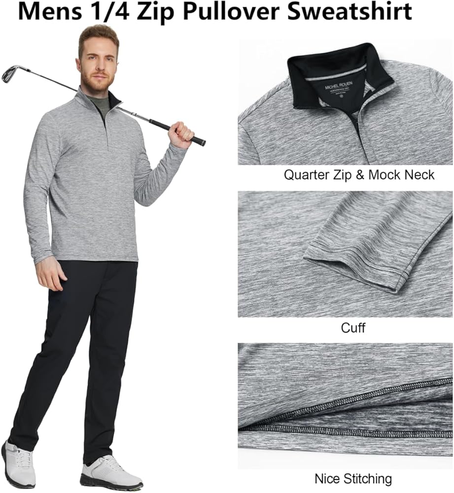• OCCASION: The pin striped heather pattern makes this mens half zip pullover sweatshirt more stylish and elegant. Prefect for golf or other outdoor sports activities, also for travel and workout. Great gifts for husbands, dad, friends or boyfriend!