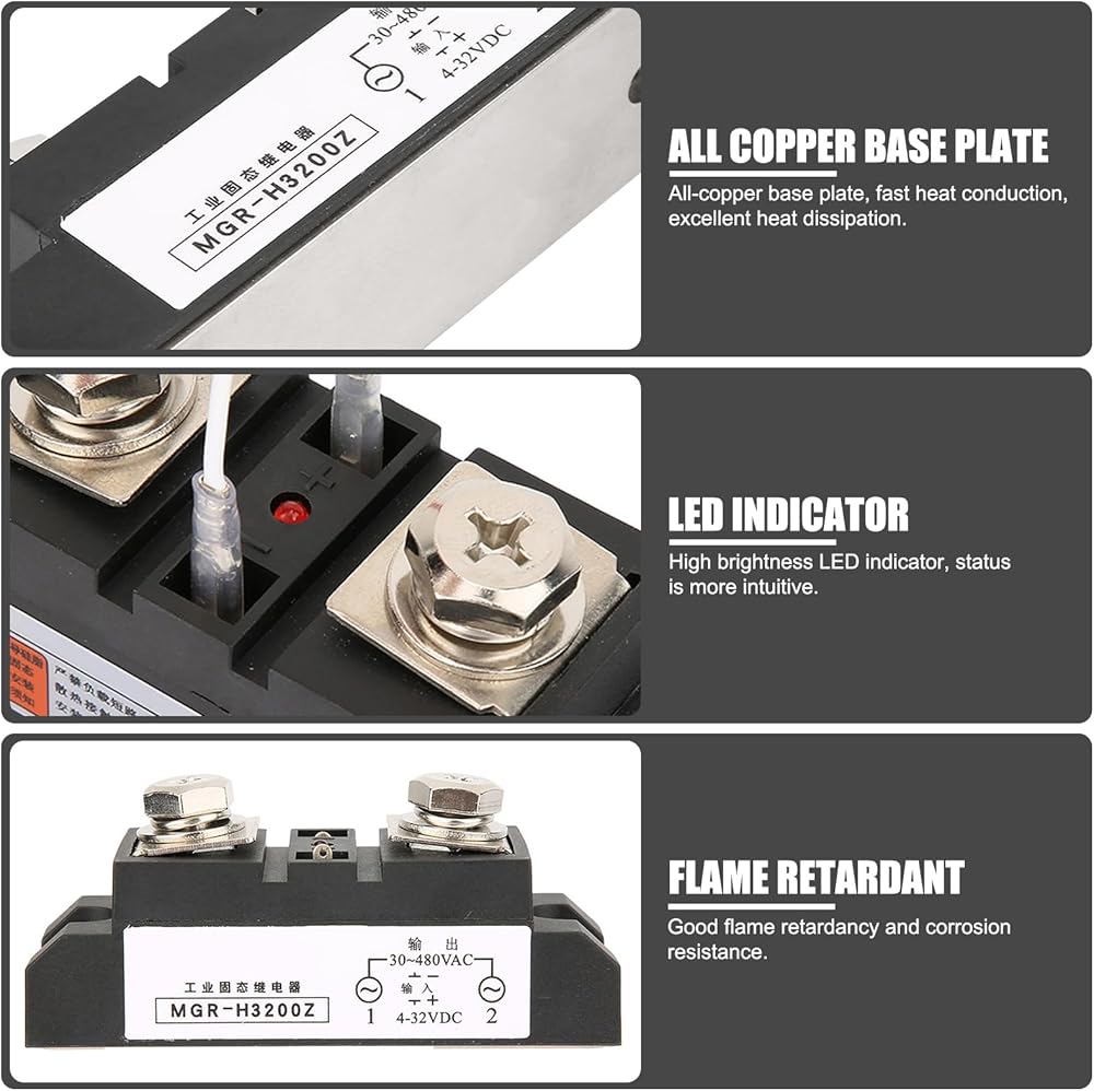 تحويل موثوق وفعال: قم بتشغيل أجهزة التيار المتردد الخاصة بك على الفور من خلال التحكم الدقيق في التيار المستمر، وذلك بفضل مرحل الحالة الصلبة عالي الأداء 200 أمبير، وهو مثالي للتشغيل الآلي والتحكم في التدفئة بشكل سلس.