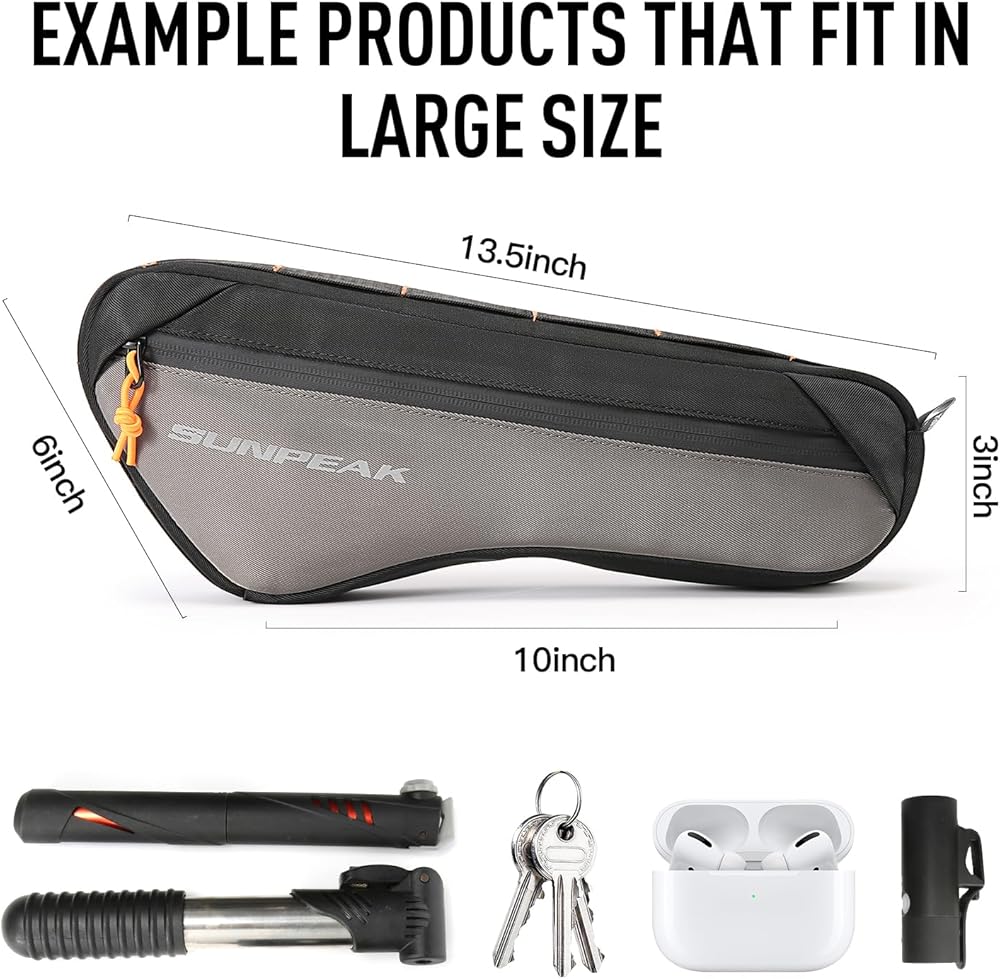 سعة كبيرة: تحتوي حقيبة تخزين الدراجة على مساحة داخلية كافية لوضع هاتفك المحمول، ومضخة الإطارات الصغيرة، ونظارات ركوب الدراجات، وأدوات إصلاح الدراجات وملحقاتها، والمفاتيح، والمحفظة، وما إلى ذلك؛ حل مشاكل الركوب في الهواء الطلق على المدى الطويل