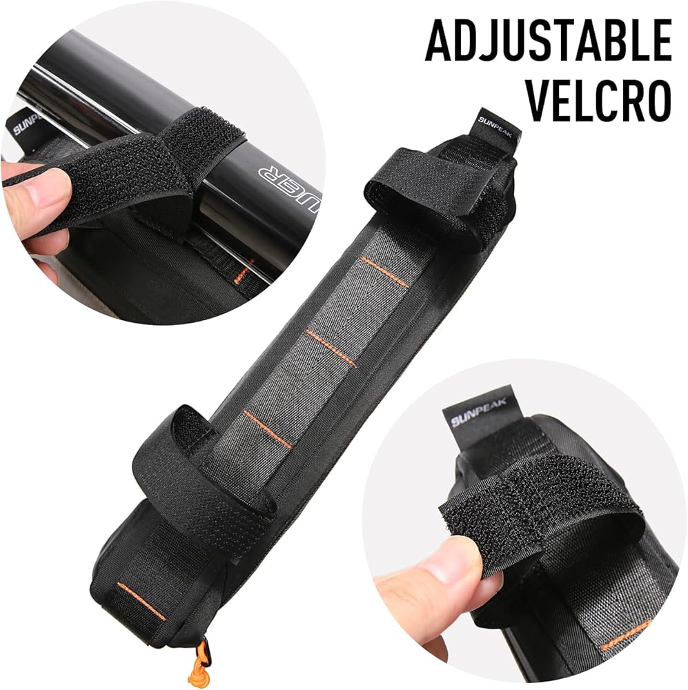 تركيب سريع: مع 4 أشرطة فيلكرو قابلة للتعديل (مجهزة بـ 9 أوضاع فيلكرو)، يمكن تثبيتها بسهولة على الأنبوب؛ لن تتحرك حتى إذا كنت تركب على الطرق الوعرة أو الصخرية، وتناسب معظم الدراجات الجبلية والركاب