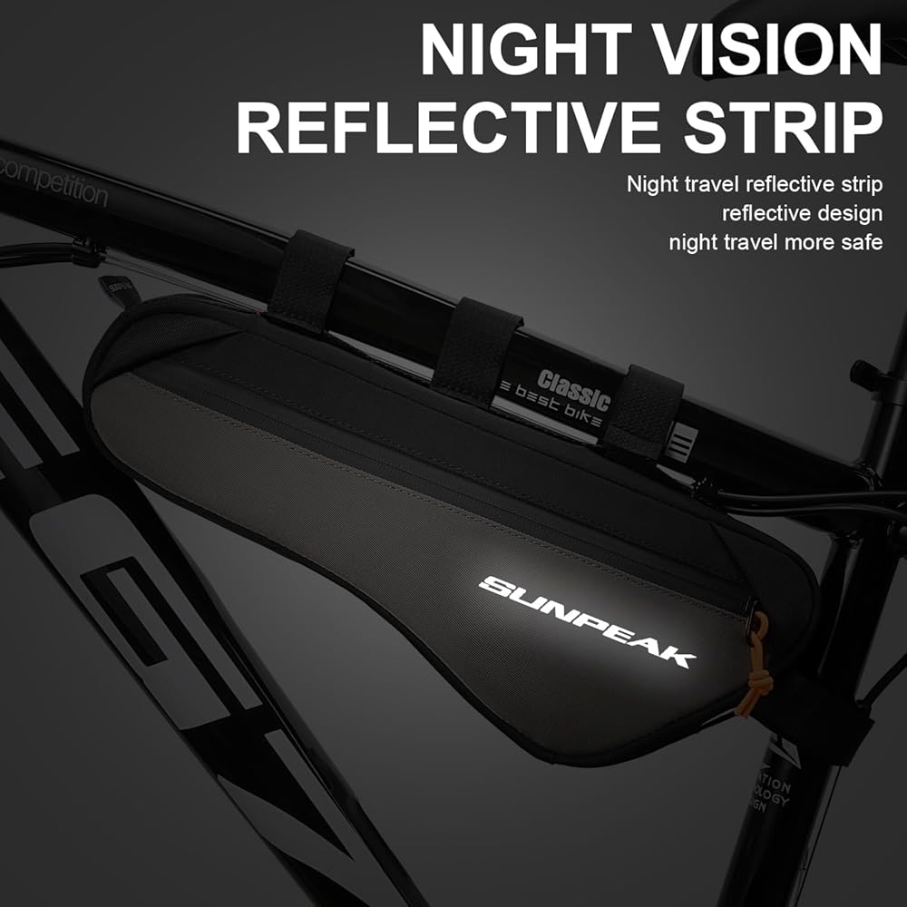 مواد عالية الجودة: حقيبة إطار الدراجة مصنوعة من قماش البوليستر 600D، وهو ليس مقاومًا للماء فحسب، بل أيضًا متين ومقاوم للخدش؛ يمكن للسحاب المحكم الغلق أن يتحمل آلاف مرات الفتح والإغلاق