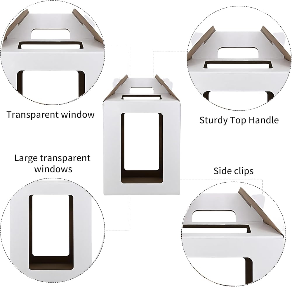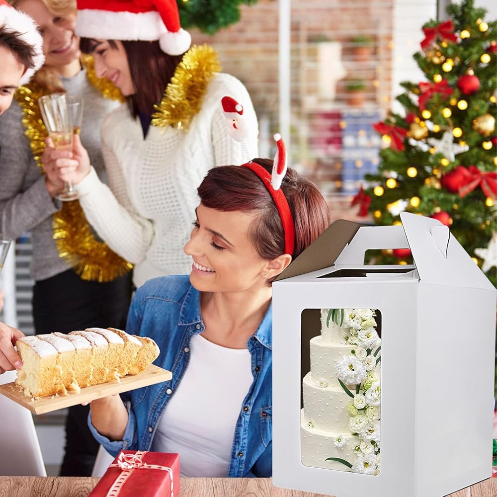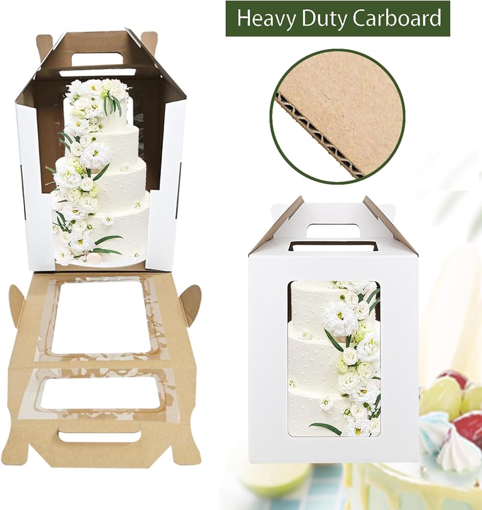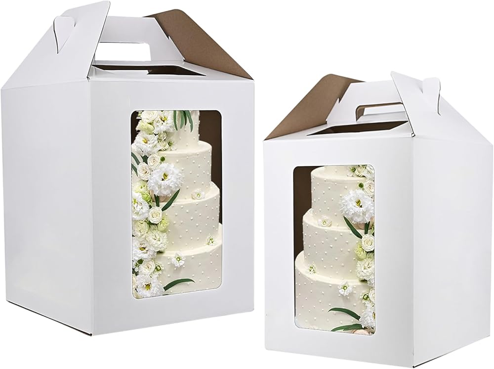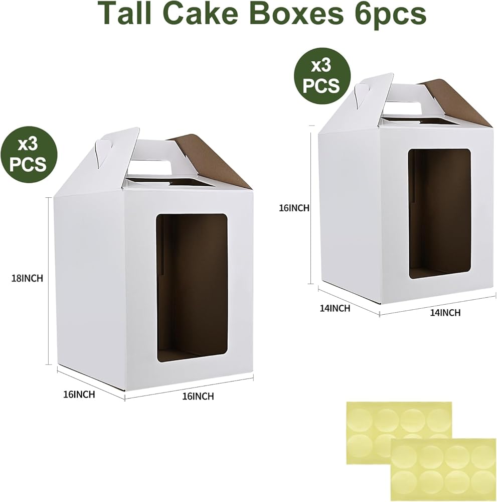 عبوة مكونة من 6 صناديق كيك: هذه المجموعة من صناديق الكيك للاستعمال مرة واحدة تنقل الكعك ذو الطبقات بأمان. تتضمن المجموعة 3 قطع من علب الكيك مقاس 10×10×12 بوصة مع نوافذ، و3 قطع من علب الكيك مقاس 12×12×14 بوصة مع نوافذ.
