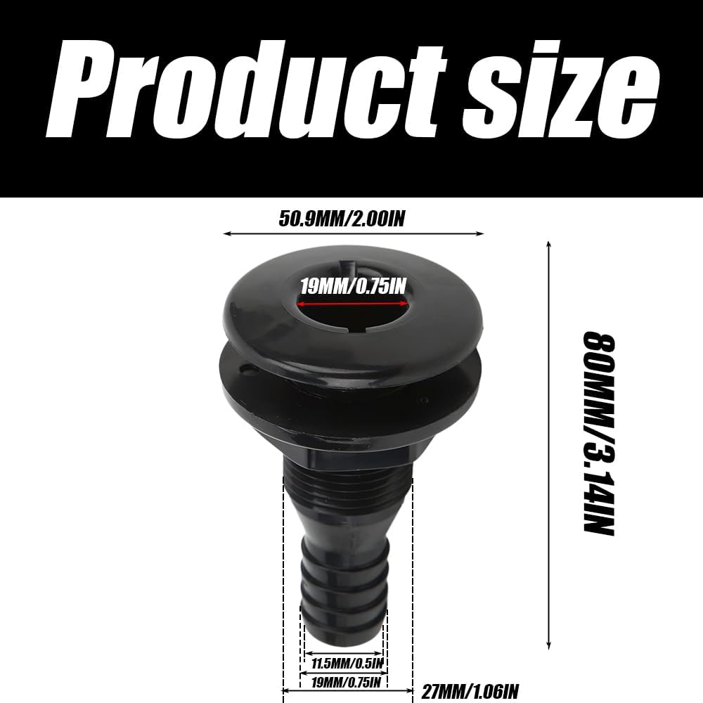 • Package & Size: 1pcs thru hull fittings for boats; Size: 80 x 50.9 mm/ 3.15 x 2 inch; Interface diameter: 19 mm/ 0.75 inch