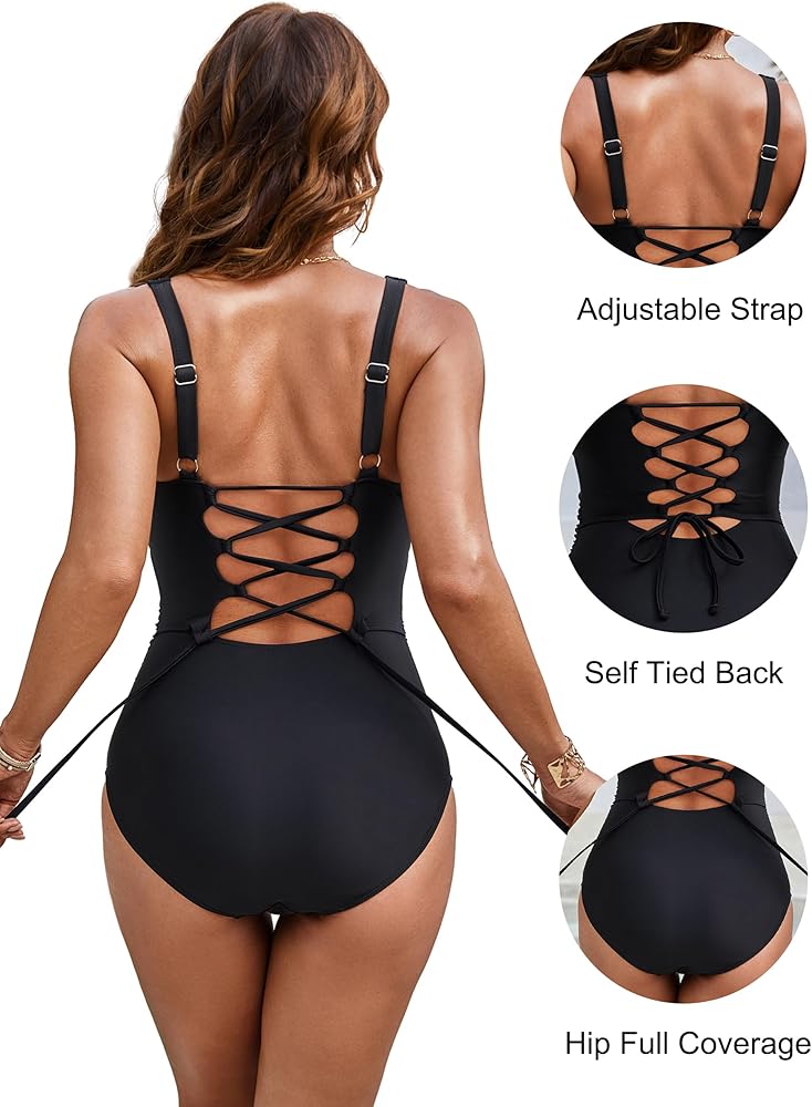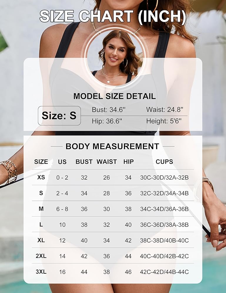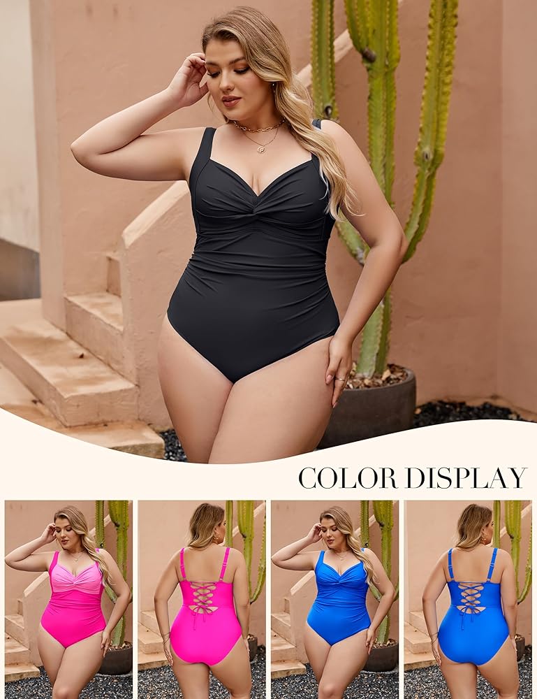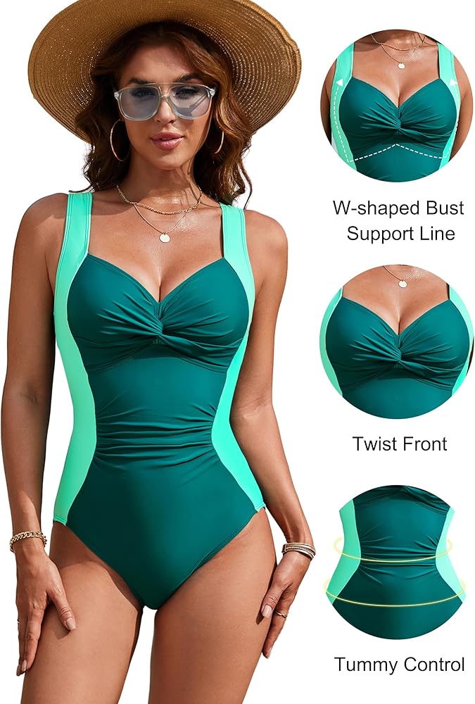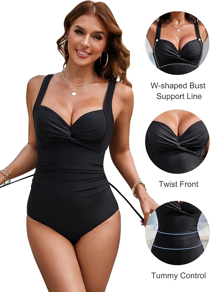 التصميم: تم تصميم أحزمة الكتف القابلة للتعديل والظهر المربوط ذاتيًا لضبط ملابس السباحة القديمة لتناسب أكثر راحة. جبهة ملتوية، خط دعم للصدر على شكل حرف W ومنصات حمالة صدر قابلة للإزالة تلتف وترفع الثديين بقوة، مما يجعلها أكثر استقامة. تساعد التفاصيل المكشكشة على إخفاء البطن وتبدو أنحف.