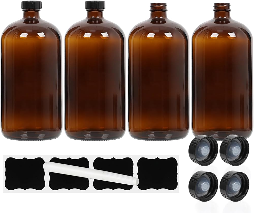 تشمل الحزمة: 2 PCS 32 OZ الزجاج العنبر بوسطن ، 4 ملصقات و 4 غطاء المسمار في الفينول مع بطانة بولي seal.