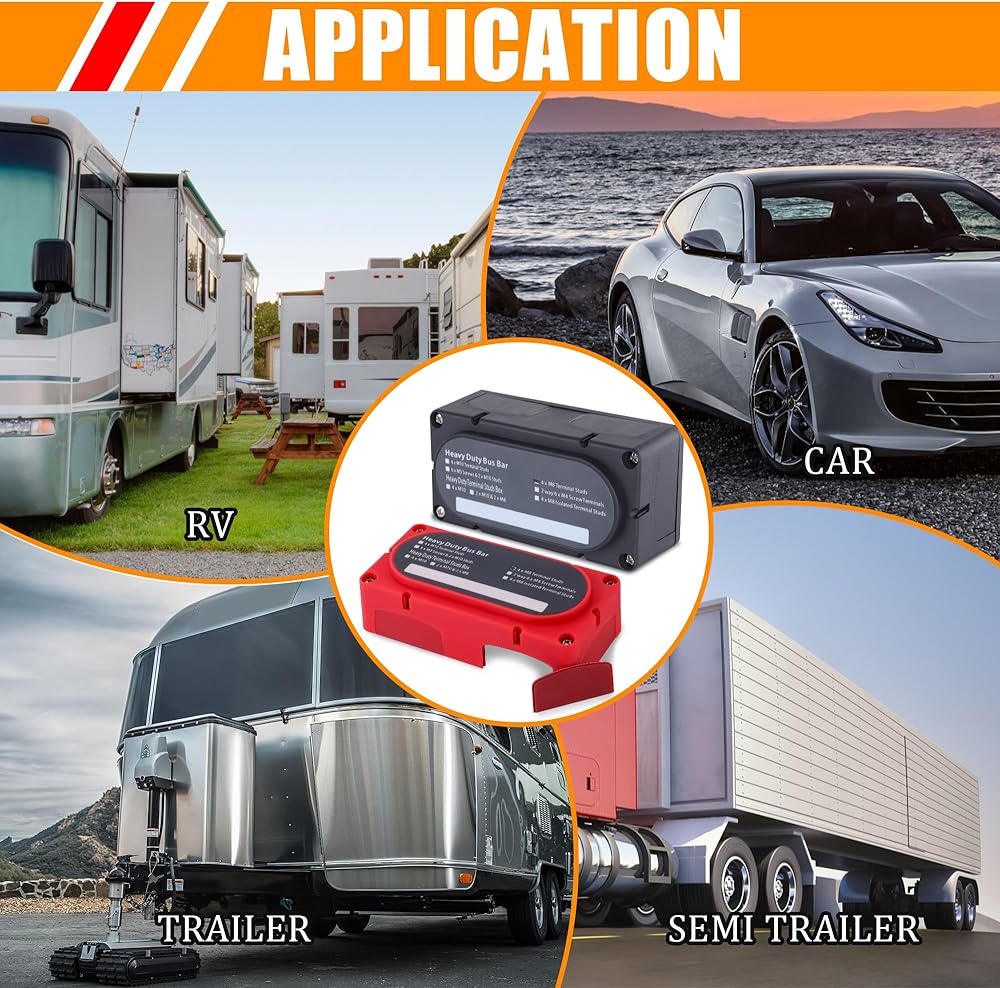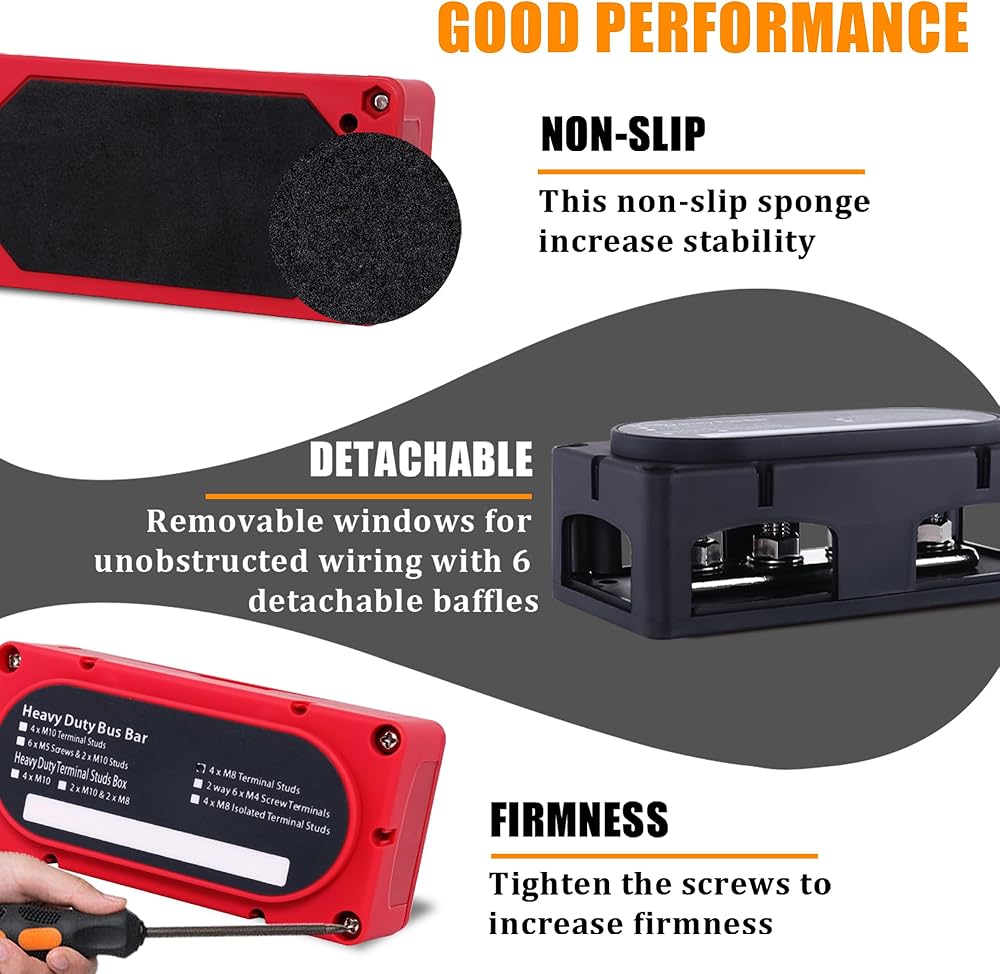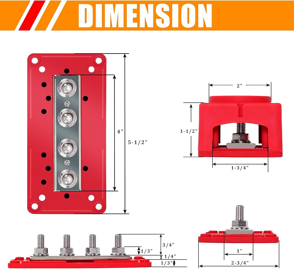 Ailbiuko 300A Bus Bar وحدة الخدمة الشاقة 12V 24V 48V DC كتلة توزيع الطاقة صندوق Busbar مع 4 × M8 (5/16 ") ترصيع طرفي وعروات كابلات أنابيب تقليص الحرارة لشاحنة سيارة RV البحرية (أحمر وأسود)