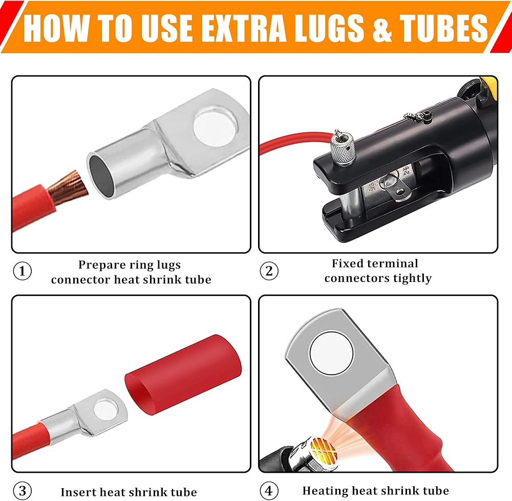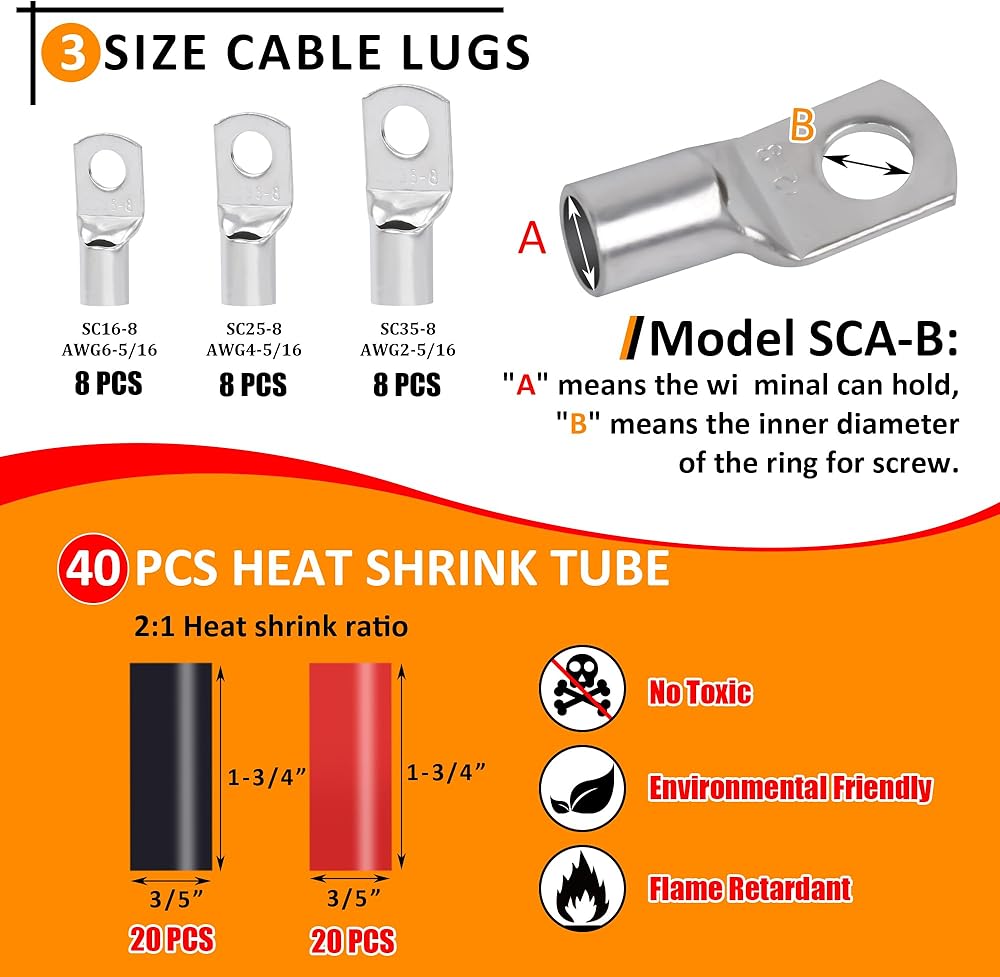 [ما تحصل عليه]: شريط ناقل أسود 300A M8، 12 قطعة في كل عبوة من عروة كابل (AWG) 5/16 بوصة مع 20 قطعة 2: 1 أنبوب أنابيب انكماش حراري لاصق مزدوج الجدار لعملك (10 قطع أسود و10 قطع أحمر).