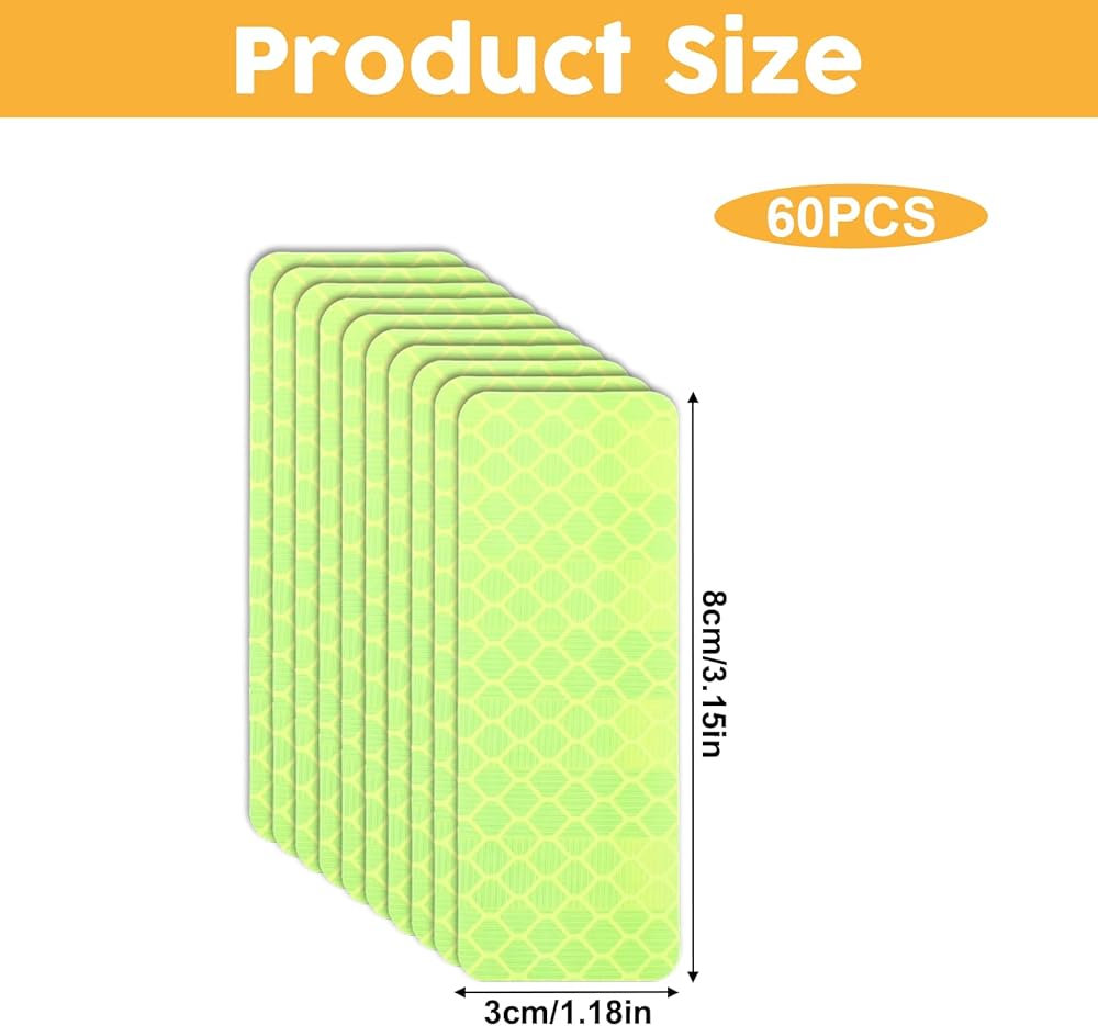 • Package Included: You will receive 60pcs reflective stickers in fluorescent yellow-green.Each sticker measures approximately 1.18 x 3.15 inches,meeting all of your needs while leaving you with enough stickers to share with family members,classmates and more.