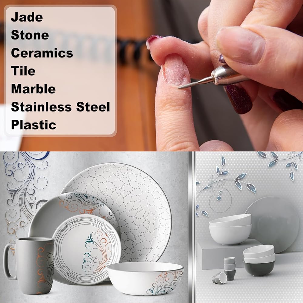 التطبيقات - مجموعة بتات الماس مناسبة للغاية للديكور المنزلي والحرف اليدوية. إنه مساعد جيد للتلميع ، الطحن ، الحفر ، القطع ، النقش وغيرها من العمليات ، والتي يمكن نقشها على مواد مختلفة ، مثل البلاط ، السيراميك ، الرخام ، الحجر ، السيراميك ، العقيق ، وحتى المعادن الصلبة مثل الحديد والفضة