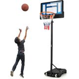 Enjoy playing basketball anywhere and anytime with Giantex portable basketball hoop! With its innovative stepless height adjustment design, this basketball hoop is built to grow with your kids and provide endless fun. You can easily adjust the rim height from 3 ft- -6.9 ft. In addition, made of rustproof powder-coated metal tubes, while equipped with a shatterproof PE backboard and all-weather polypropylene net, the basketball hoop is built to withstand any weather conditions. The thickened fillable base and reinforced triangular structure add stability and prevent shaking during intense play. Moreover, with 2 built-in wheels, the basketball hoop can be easily moved anywhere.