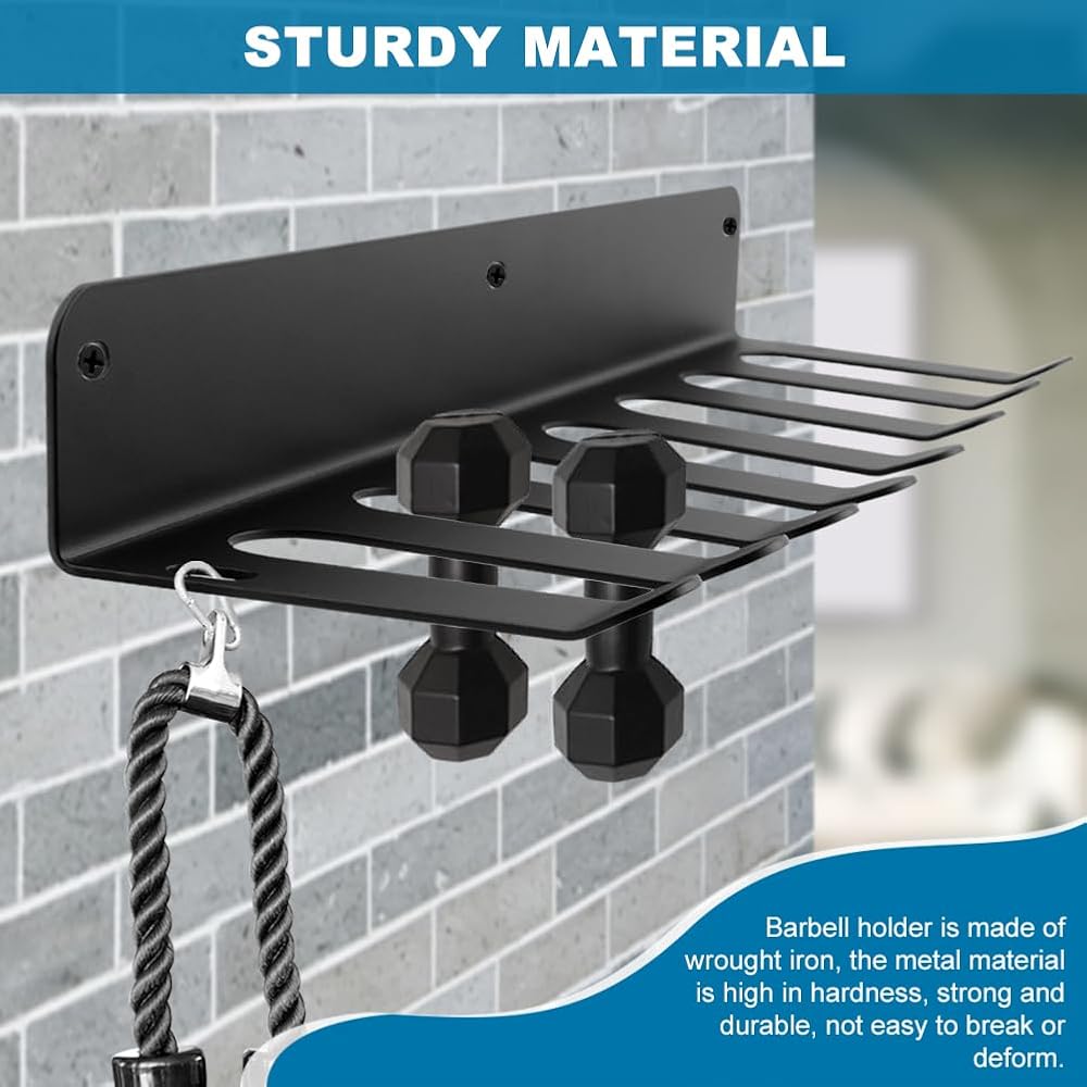 【STURDY MATERIAL】Barbell holder is made of wrought iron, the metal material is high in hardness, strong and durable, not easy to break or deform. The product surface is smooth and burr-free.