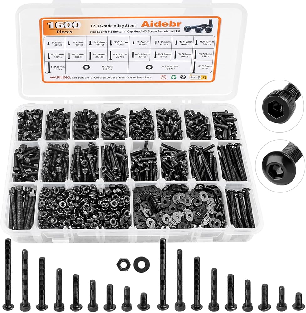 • 【1760pcs مقبس Hex مقبس رأس المقبس مقاس】 الحزمة تأتي مع 1760pcs m2 m3 m4 m5 المسمار ، المكسرات ، الغسالات القفل والمسطح ، وجع ألين ، والتي تشمل أنواع 16 أحجام مختلفة وأطوال سد سد السداسي شائع حجم المسمار لتلبية احتياجاتك المتعددة ، يأتي مع 4 أجهزة كمبيوتر مفصلية Allen بحجم مختلف لمريحة عند الاستخدامات.