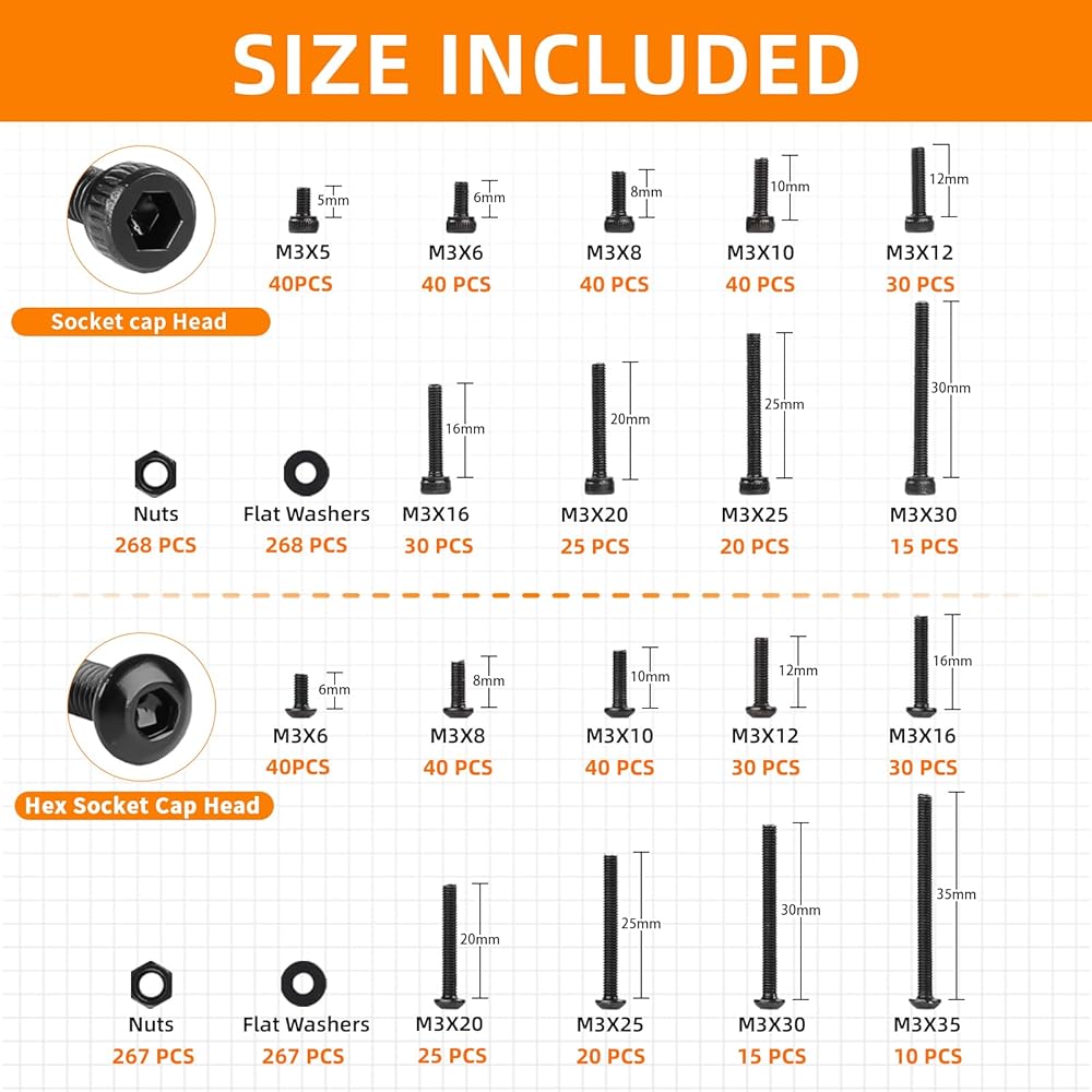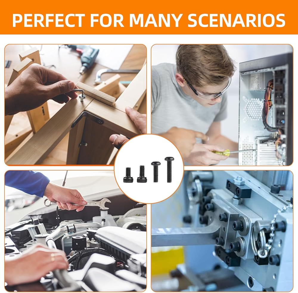 • 【براغي مترية متعددة الحجم】 تم تعيين الترباس المتري والجوز مع 4 أحجام من البراغي M2 ، M ، 3 M4 ، M5. أطوال الخيط M2: 4mm/6mm/10mm/12mm ، m3: 6mm/8mm/12mm/16mm ، m4: 8mm/12mm/16mm/20mm ، m5: 12mm/16mm/20mm/25mm. إنه يأتي مع أحجام المسمار الشائعة و مفصل السداسي ويلتقي بجميع المطالب.