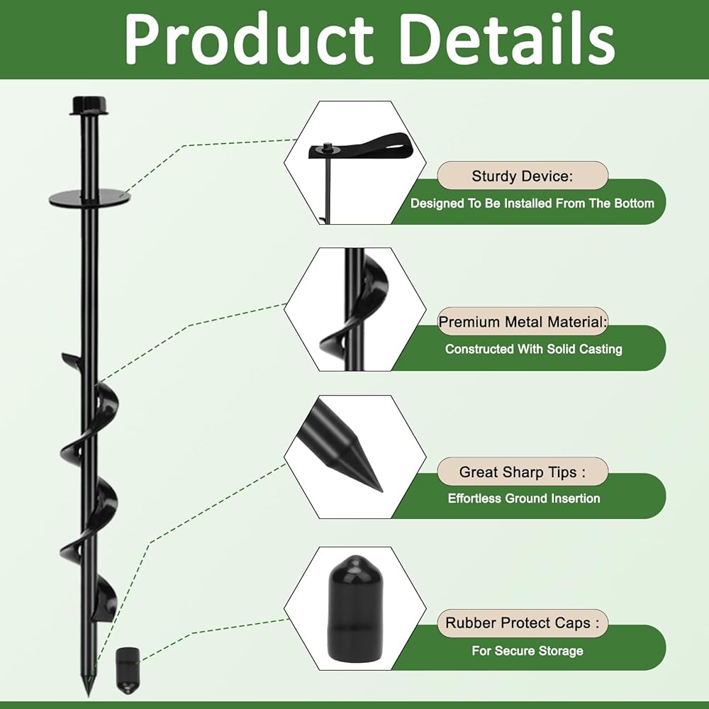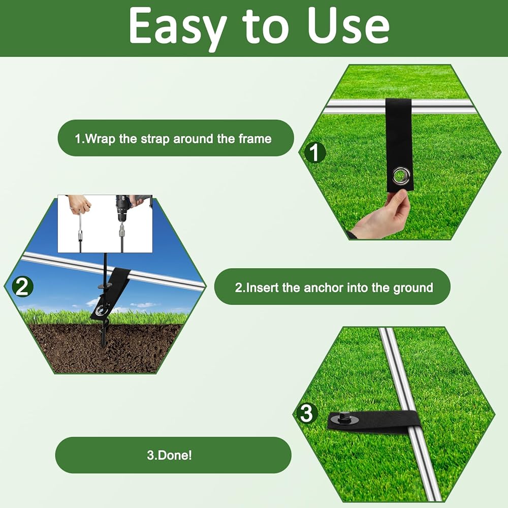 Stable anchoring: Our 12-inch metal ground stakes provide excellent stability even in strong winds, thanks to the pointed design, spiral blades, and high-quality nylon cable ties that can firmly grasp the soil