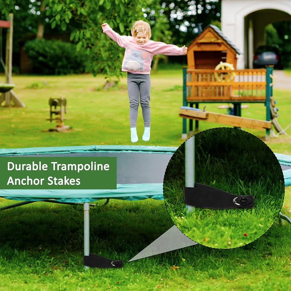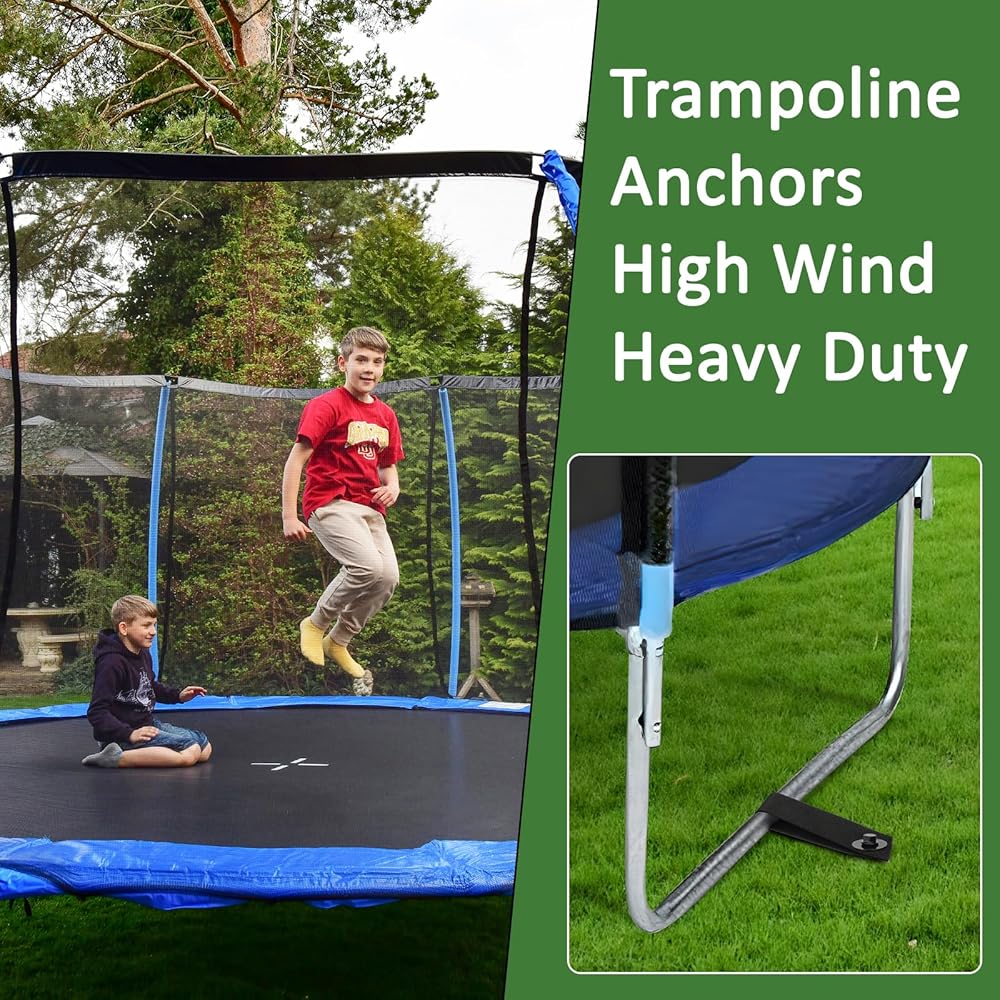 Heavy Duty Trampoline Anchors: Ensure ultimate security with our heavy-duty 12-inch trampoline ground stakes. Each metal anchor is made of durable 0.314-inch steel to withstand frequent use and extreme weather