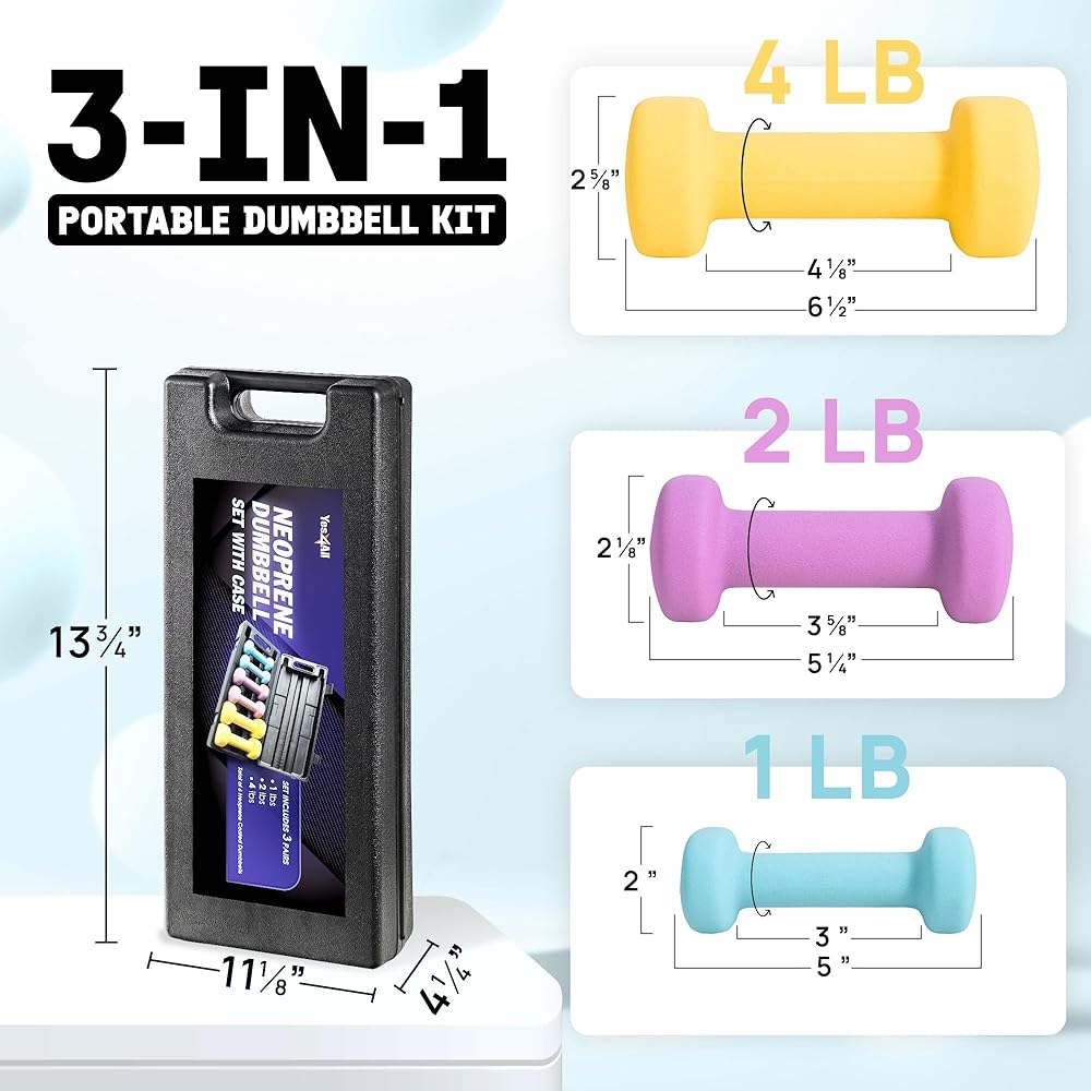 مجموعة دمبل النيوبرين من Yes4All مع حقيبة، مجموعة أوزان الدمبل وأوزان اليد للنساء، مجموعة أوزان دمبل للتمرين واللياقة البدنية للصالة الرياضية المنزلية - مجموعة أوزان 14 رطل و20 رطل