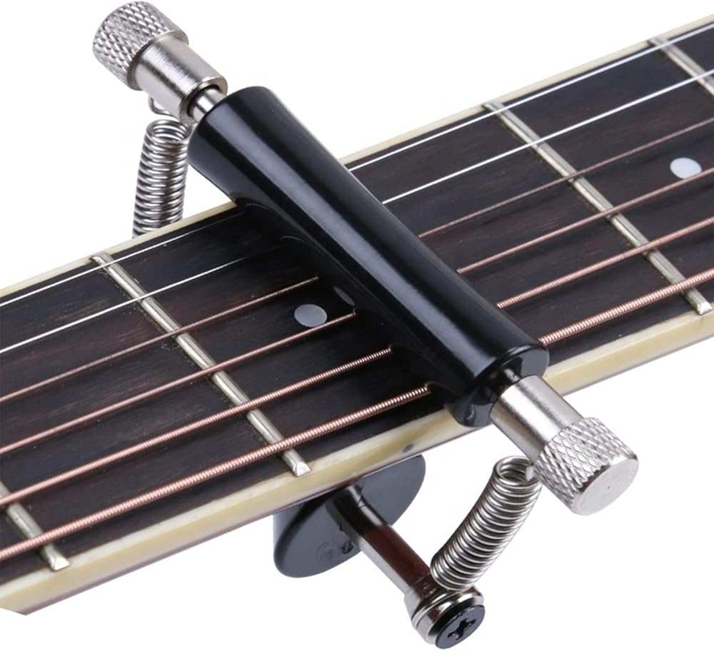 المتداول بسلاسة: يمكن للغيتار القابل للتعديل أن يتدحرج كابو بسلاسة لجعل التوليف يظل مستقرًا ولن يقرص الصوت من النغمة. ما عليك سوى تحريك الأسطوانة من الحنق إلى الإبهام الخاص بك ، فإن تغييرًا مختلفًا في اللحن ينتج عنه.