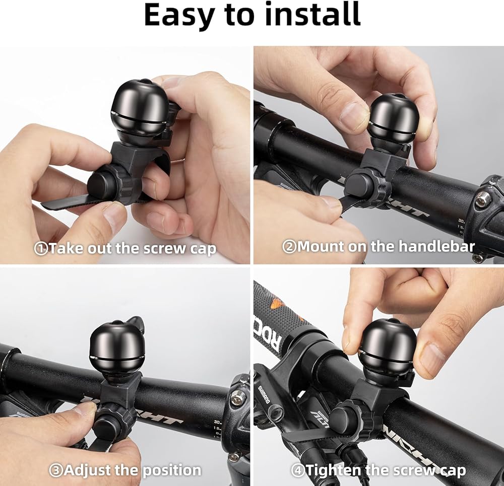 【من السهل تثبيت】 فقط يستغرق 1 دقيقة لتثبيت هذا الجرس ، فقط شد المسمار على المقود مع مفك البراغي فيليبس.