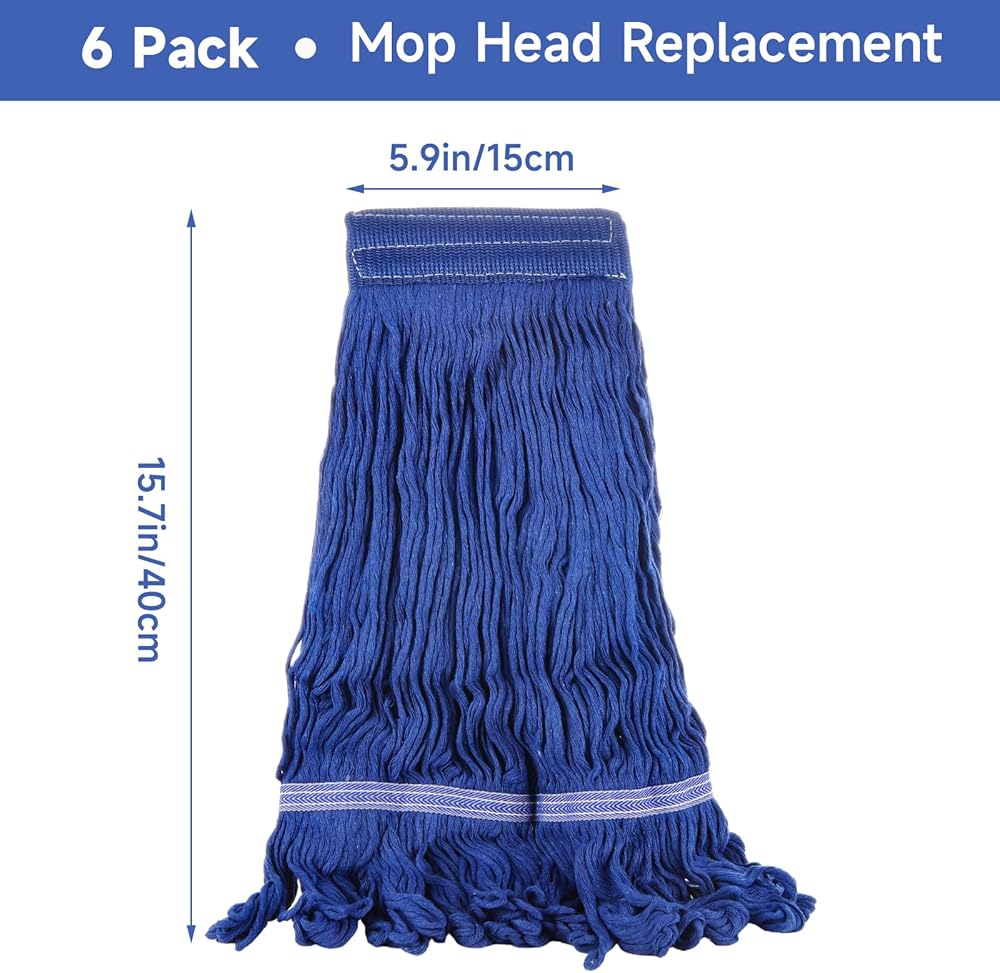 LDHHYH 6 Pack Commercial Mop Head Replacement, Reusable Heavy Duty Cotton Mop Head Refills, Blue Wet Mop Heads for Floor Cleaning-16 x 6 inch